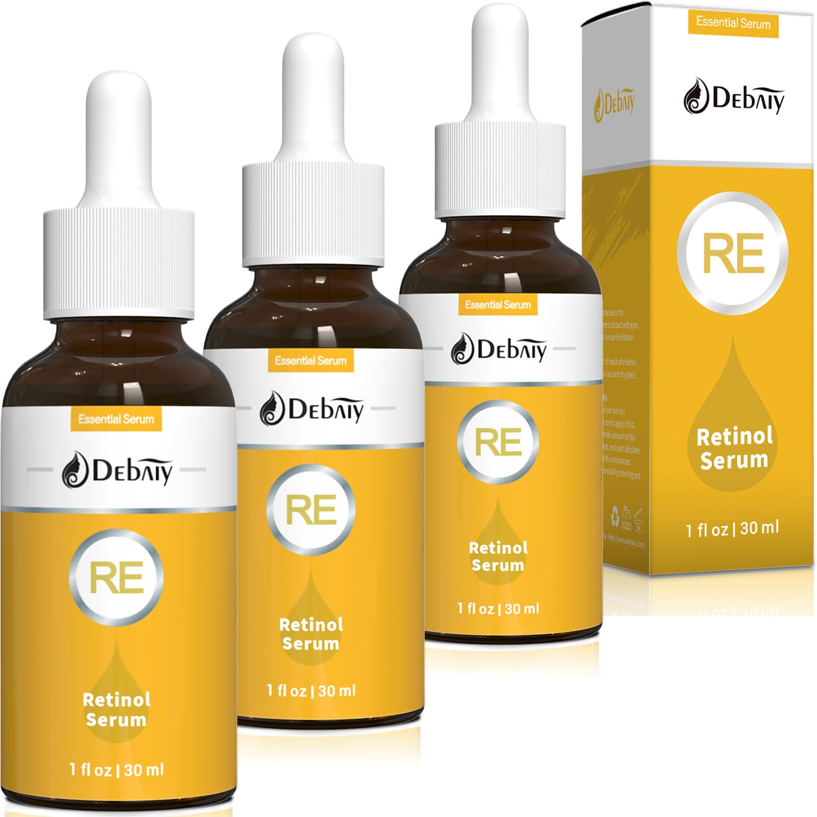 2023 New Formula 3 Pack DEBAIY Retinol Serum provides deep hydration and moisturization, anti-aging, leaving the skin plump and supple. NOTE: Light avoidance and night-time use. Causing the skin to darken due to retinol easily broken down by ultraviolet rays from light. The presence of retinol, beta-carotene, and Centella Asiatica extract helps reduce the appearance of wrinkles, Soothes making it suitable for sensitive or irritated skin. Contains hyaluronic acid, retains moisture for long-lasting hydration and improves the overall texture of the skin. Improve skin texture, and provide antioxidant protection. Adhere to a healthy routine & diet, and daily-bedtime use of DEBAIY serum. Delays skin aging and gives a baby-like complexion. DEBAIY Retinol Serum Benefits: - Activates skin, improved skin turnover - Promoting smoother skin - Lightens Wrinkles - Smooth Fine Lines and Shrinks Pores - Deeply Moisturizes the Skin - Hydrates and Revitalizes Skin - Anti-Aging Perfect for most people's Skin: 100% natural ingredients that moisturize and don’t irritate the skin. Refreshing and non-greasy. How to Use: ? Wash and pat skin dry. ? If using a toner, apply it at this step. ? Take 2 drops or 1 tube amount of this serum to face, neck and décolleté. ? Follow up with a moisturizer of your choice. ? Can be used daily-bedtime use. How to Store? Store in a cool, dry place, avoid direct sunlight. Keep away from children. Have questions? Concerns? The DEBAIY Team is available 24/7. Contact us any time for any issue and we’ll do our best to help!