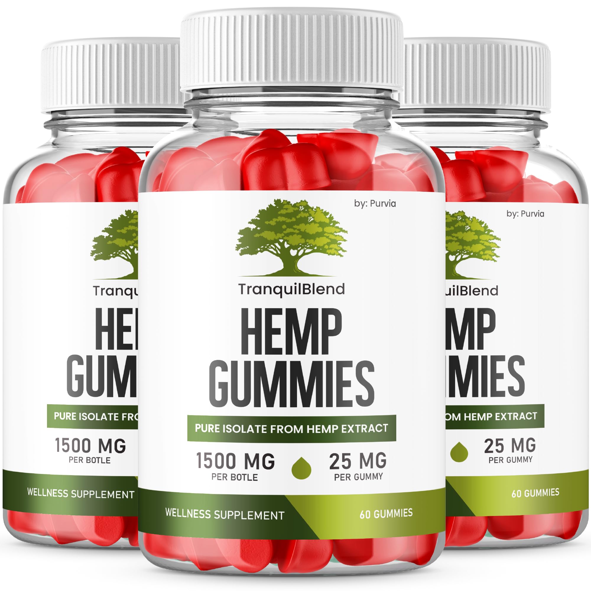 (3 Pack) Tranquil Blend Gummies with Hemp Tranquil Blend Hemp Gummies Extra Strength Formula Maximum Performance Blend Tranquil Blend Gummy Great Taste 1500mg Bottle 25mg Per Gummy (180 Gummies)