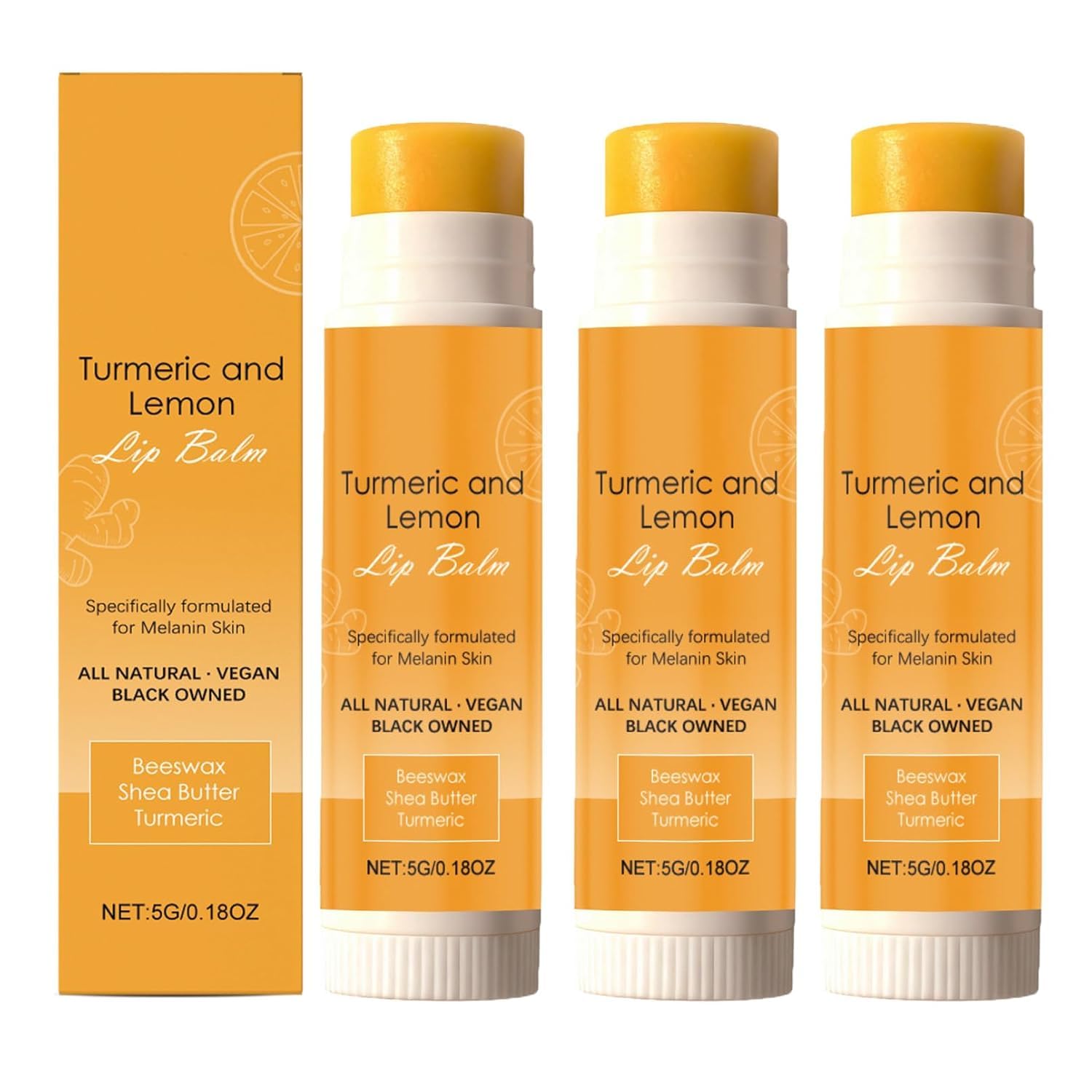3pcs Lemon Ginger Lip Balm Turmeric Dark Exfoliating Clean Moisturizer Lip Balm Care Specifications: ?Item Type: Lemon Ginger Lip Balm ?Function: Deep Moisturizing Improve Dry Lip IPrevent Moisture Loss ?Shelf life: 3 years ?Storage method: Store in a cool dry place ?Say no to dryness: Before use: dry and bleeding lips After use: moisturized lips ?Say no to residue: Before use: lipstick and other makeup residue on lips After use: cleaner lips ?Say no to lip lines: Before use: visible lip lines that make you look