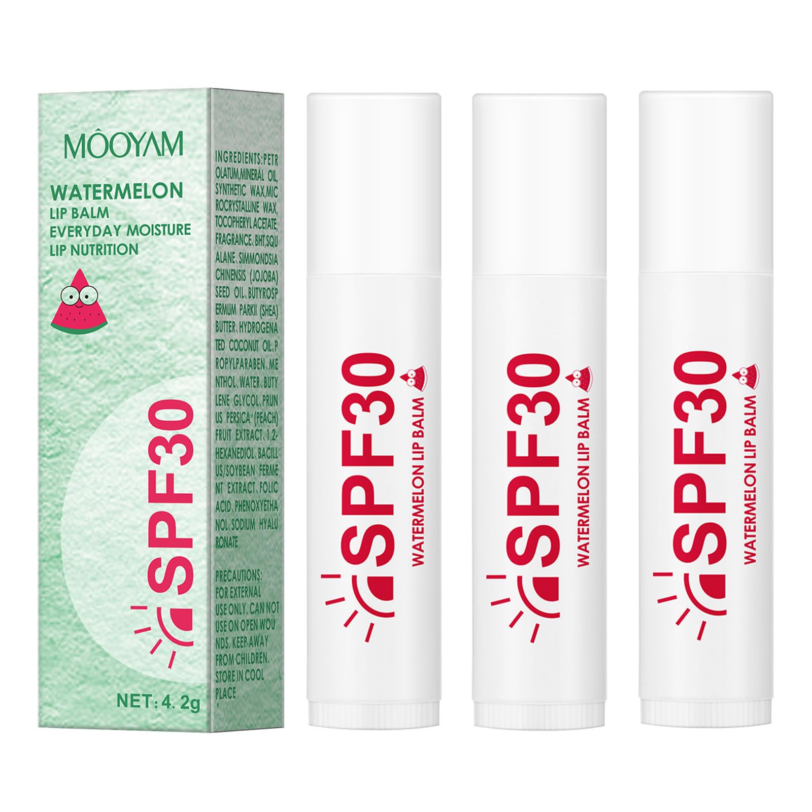 3 Pack Watermelon Lip Balm with SPF 30 Long Lasting Moisturizer for Chapped Lips Overnight Lip Treatment Lip Care for Nourishing Lips Lip Gloss Moisturizer with