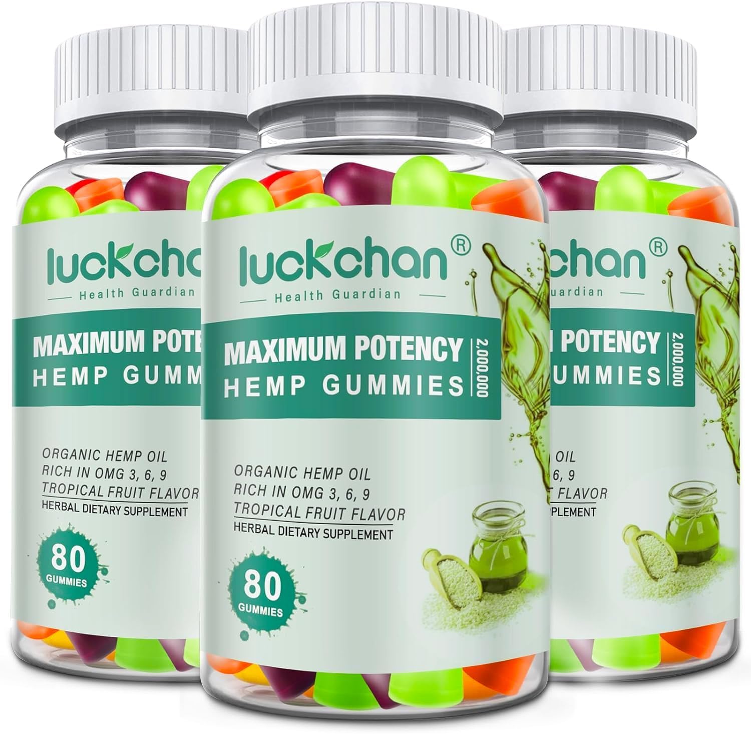 ✓ ABOUT US: The health management expert team of LUCKCHAN hemp gummies has developed products suitable for Americans based on the taste and physical characteristics of Americans. LUCKCHAN is a brand that focuses on the management of customers' physical health. ✓ A FUN AND DELICIOUS ALTERNATIVE: Smooth all-natural flavors! They are more pleasant and easy to chew than other low-sugar alternatives, and are a perfect replacement for bitter, hard-to-swallow capsules. It provides your body with all the nutrients it needs in a very tasty way. ✓ PREMIUM HEMP GUMMIES: Organic Hemp Gummies from Colorado. Third-party, ISO-certified lab tested to ensure purity and potency. Zero fat, Zero cholesterol. and only 1g of suga. ✓ ADVANCED CO2 EXTRACTION: Uses advanced CO2 to extract essential nutrients from the plant (stem, leaves, etc.). Get potent results the easiest way when these beneficial phytonutrients and hemp oil are infused into hemp gummies for sleep pain anxiety. ✓ POWERFUL FORMULA: Get 3 bottles of 2,000,000 potency of Real High Potency Hemp Gummies for the price of 1 bottles of 9,000 potency. And Offers 90-Day Risk-Free Money-Back Guarantee. No artificial colors, flavors or preservatives. Gluten-Free, Gelatin-Free, Non-GMO.