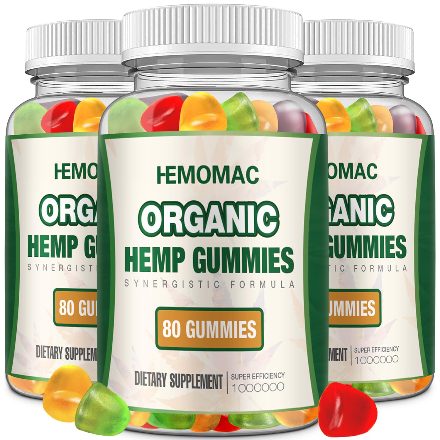 (3 Packs) Organic Hemp Gummies High Potency for Pain Anxiety Sleep Edibles Gummy Hemp Oil Extract - Vegan Non-GMO 80 Count (Pack of 3)