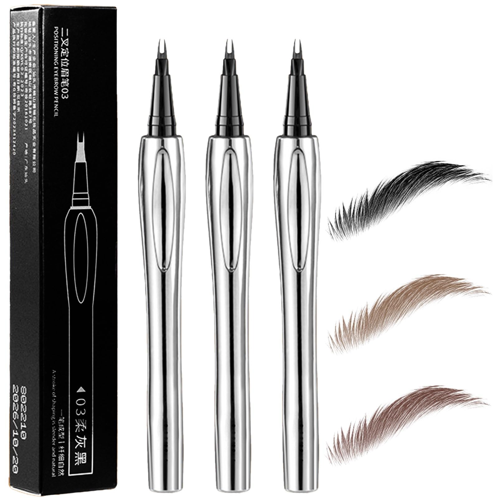 3 Pcs Cooklesa Eyebrow Natural Waterproof Eyebrow Pen with Microfine Tip 2-in-1 Dual-Ended Microblading Eyebrow Pen Two-Pronged Eyebrow Pencil (3 Colors)