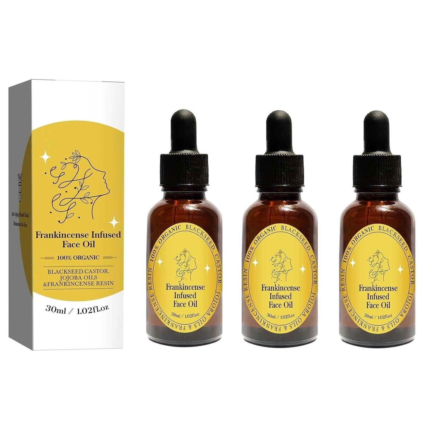 3 Pcs Frankincense Resin Oil for Face Infused Organic Frankincense Resin Black Seed Castor & Jojoba Oils for Skin Moisturizer Anti-Aging Serum.