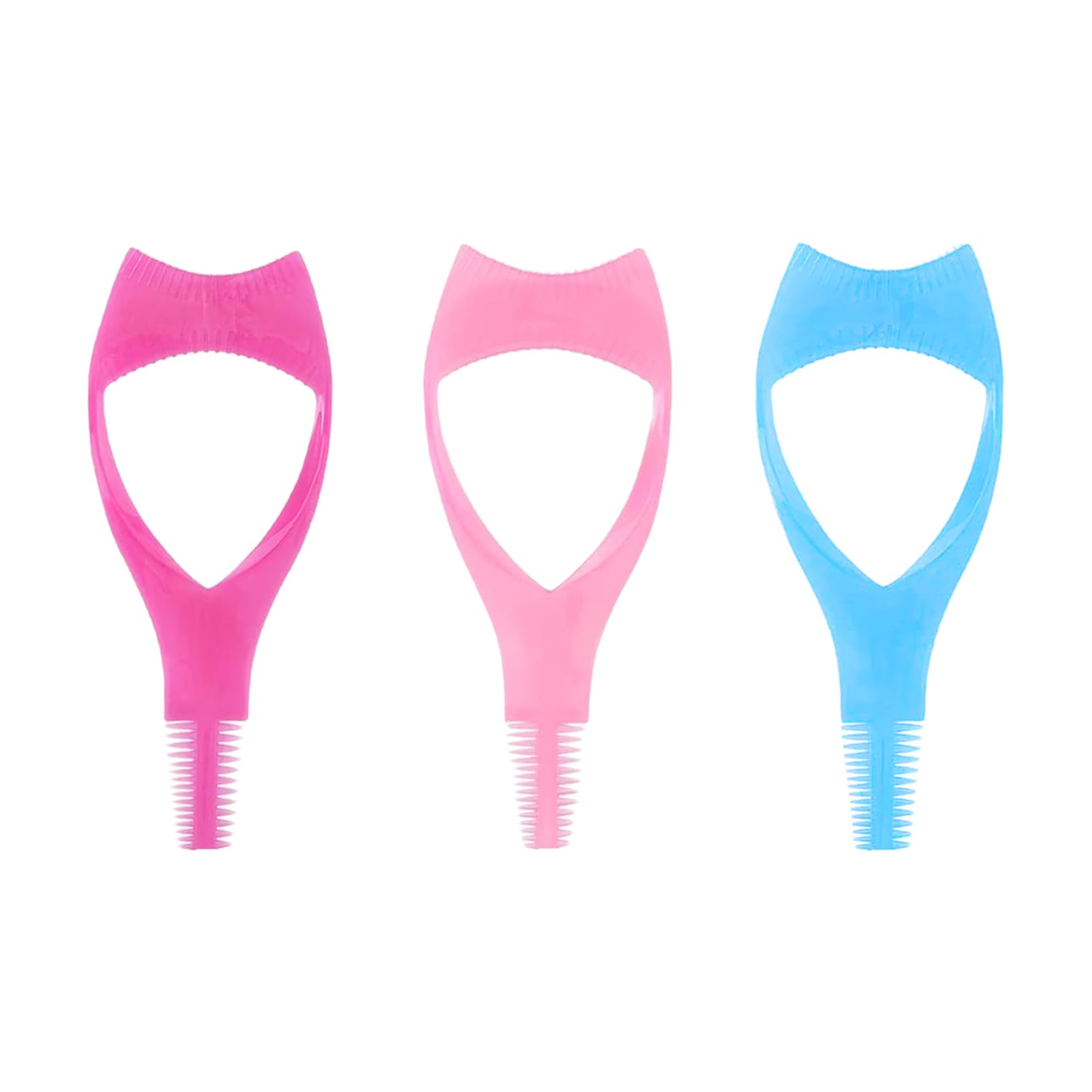-Colors: pink, rose, blue -Size: 4.2 10.5cm -Material: Plastic -Made of plastic materials, it is lightweight, simple, convenient, portable, and can be used for a long time. -A lightweight and consistently useful beauty and makeup aid that can effectively help you improve your makeup and eyelashes. -Simple to use: When you draw eye black, just put the eye black protective cover under the eyes to prevent eye black from contaminating the surrounding skin or dripping on the eyes Then brush the eyelashes with an eyelash comb to make them clean and tidy. -The quantity is enough for your daily use. You can also share this eye black applicator with your family, friends and colleagues. -It has a variety of functions. It can be used as eye black protective cover, mascara brush, mascara comb, etc. to help you create a perfect makeup, greatly save your time, and bring great convenience to daily makeup. Note: Suggest cleaning after use.Perfect Gift: This practical eyelash guide assistant is perfect for women who wear makeup. It can easily create beautiful makeup. It is the best gift for women during festivals. Easy to use: Designed specifically for beginners and experts, it can create perfect eye makeup in just a few seconds like a professional makeup artist, without worrying about dirtying the surrounding skin or dripping onto the eyes. Two eyelash combs with different densities are used on the side of the eye black handle to make eyelashes clear and tidy. The eyelid shape design perfectly fits the contours of the eyes, making it easy to create natural eyelashes. Convenient to carry: The lightweight eye black applicator can be placed in any lady's purse, handbag or cosmetic travel bag, and the portable size allows you to carry easily. Ergonomic and Comfortable: The three in one eyelash tool is designed with ergonomics and is suitable for the area around your eyes, making it very comfortable to use. It is made of plastic material, lightweight, easy to carry, and can be used for a long time, making it the perfect gift for any woman. Perfect set: 3 different colors are enough for your daily use. You can also share this eye black applicator with your family, friends and colleagues.