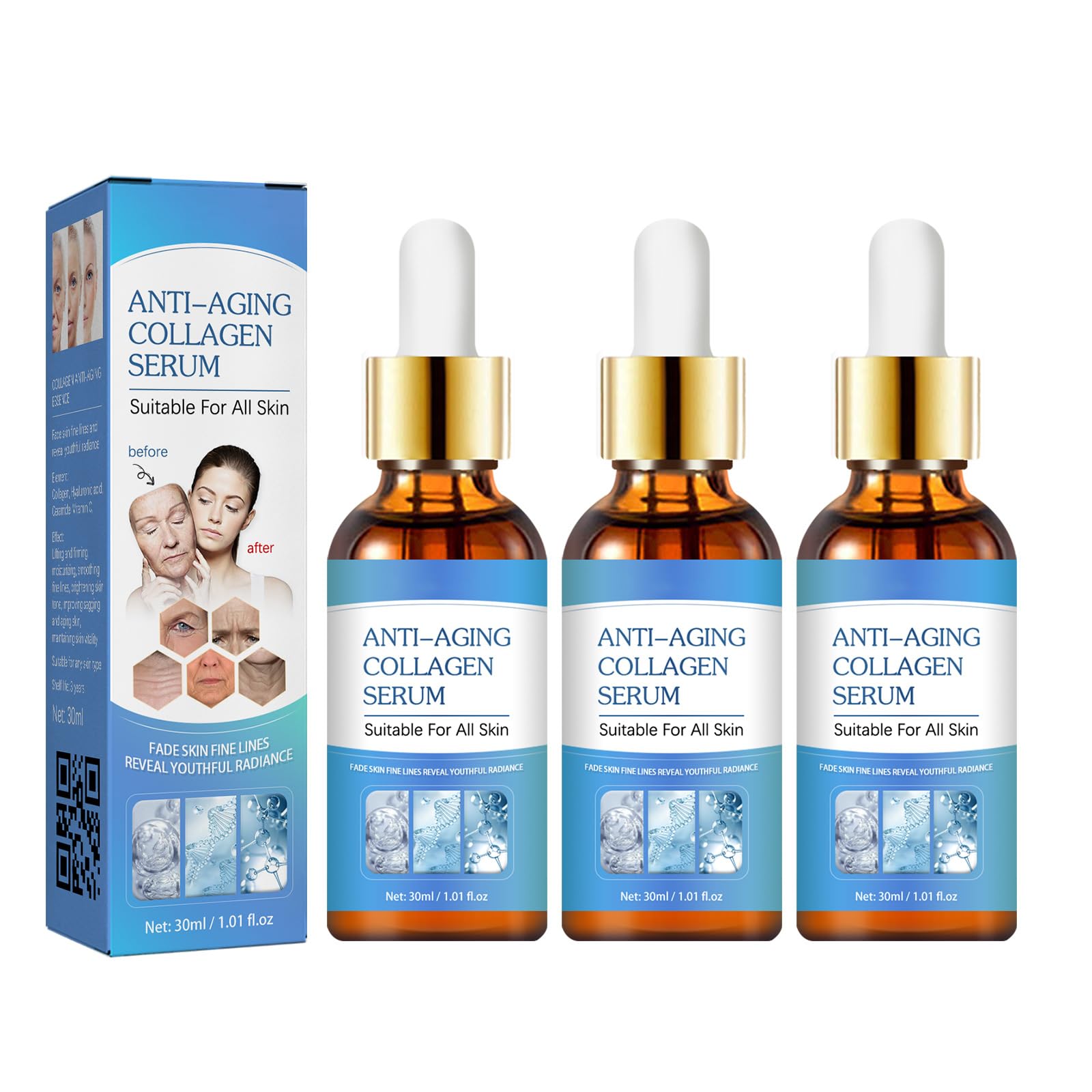 3 Pcs Stock Solution Facial Serum Anti-aging Collagen Face Serum Facial Skin Nourishing Hydrating Moisturizing Skin Care Essence Tighten Skin Reduces Wrinkles and Fine Lines 1.01 FL OZ Each