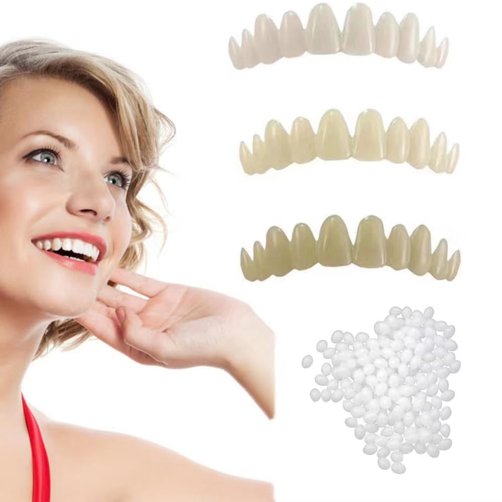 3 Pcs Tooth Repair Kit Temporary Natural Shade Fake Teeth for Filling The Gap Moldable Fake Teeth and Thermal Beads Replacement Kit Replace The Missing or Broken Tooth