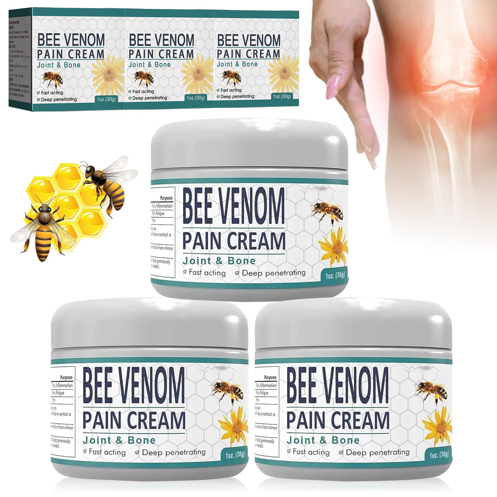 Product specifications: Ingredients: Natural herbal extracts, high -quality bee cruise, etc. Packaging: Each beeergift cream set contains 3 glasses with a capacity of 30 grams each. Applicable parts: Suitable for different body parts such as neck, shoulders, knees, hands, feet, ankles, etc. Instructions for use: Clean and dry the area to be advertised, apply a large amount of Bee Venom Joint Osteotherapy Cream to the affected area and massage it until it is absorbed by the skin.If necessary, apply a generous amount of cream and let it work on the skin for at least 15 minutes. Applicable people: Suitable for people of all ages and life, including office workers, students, athletes and pensioners. Affordable: the beeergift cream set contains 3 glasses with 30 g cream each and is therefore an affordable package that ensures sufficient application and long-term joint care. Precautions: 1. Do not take it, only for external application.Avoid contact with eyes and mucous membranes. 2. It is recommended to carry out a small Hautallergiet test before the first application.If an allergic reaction occurs, please end the use. 3. Do not apply to wounds or open wounds. 4. Please consume before the expiry date specified on the packaging. Warnings Use under the supervision of adult ?? ?Versatile application? Suitable for people of all ages and lifestyle, including office workers, students, athletes and pensioners.The care rule of bone healing cream set contains 3 doses, each with 30g cream, offers sufficient quantity and forms an economic package to ensure that users can fully enjoy the advantages of the product.?? ?Comfortable and easy to use? The application is simple - after cleaning and drying the area to be applied, a generous amount of the bee engine ointment is applied and gently massaged until it is absorbed by the skin.This enables the product to be relieved quickly.The uncomplicated application makes the product suitable for different body areas such as neck, shoulders, knees, hands, feet, ankles and others.?? ?Promotion of blood circulation? The soothing beeergift cream can improve blood circulation and help to alleviate swelling due to joint complaints.This helps to reduce the discomfort and increase the comfort at the affected area so that users can better deal with joint problems (apply 2-3 times a day for better results).?? ?Effective & safe? The joint treatment cream with bee sting uses high -quality bee stitch components that are not only natural and effective, but also gentle.The BEE Cream not only offers external relief, but also promotes the repair process of the joints by increg the nutrient supply of the joint tissue.This helps to improve the general state of health of the joints.?? ?Natural herbal extracts? Our propolis ointment is rich in natural herbal extracts that are obtained from nature and support joint health and comfort.This ensures the naturalness of the bee serenbite, avoids harmful chemicals and lovely ingredients and enables users to use carefree use. Produktspezifikationen: Inhaltsstoffe: Natürliche Kräuterextrakte, hochwertige Bienengiftzutaten etc. Verpackung: Jedes Bienengiftcreme-Set enthält 3 Gläser mit einem Fassungsvermögen von jeweils 30 Gramm. Anwendbare Teile: Geeignet für verschiedene Körperteile wie Nacken, Schultern, Knie, Hände, Füße, Knöchel usw. Gebrauchsanweisung: Reinigen und trocknen Sie zunächst die aufzutragende Stelle, tragen Sie eine große Menge Bee Venom Joint Osteotherapy Cream auf die betroffene Stelle auf und massieren Sie sie ein, bis sie von der Haut aufgenommen wird. Tragen Sie bei Bedarf eine großzügige Menge Creme auf und lassen Sie sie mindestens 15 Minuten auf der Haut einwirken. Anwendbare Personen: Geeignet für Menschen jeden Alters und Lebenshintergrunds, einschließlich Büroangestellte, Studenten, Sportler und Rentner. Erschwinglich: Das Bienengift-Creme-Set enthält 3 Gläser mit je 30 g Creme und ist somit ein erschwingliches Paket, das eine ausreichende Anwendung und langfristige Gelenkpflege gewährleistet. Vorsichtsmaßnahmen: 1.Nicht einnehmen, nur zur äußerlichen Anwendung. Kontakt mit Augen und Schleimhäuten vermeiden. 2. Es wird empfohlen, vor der ersten Anwendung einen kleinen Hautallergietest durchzuführen. Wenn eine allergische Reaktion auftritt, beenden Sie bitte die Verwendung. 3. Nicht auf Wunden oder offenen Wunden anwenden. 4. Bitte vor dem auf der Verpackung angegebenen Verfallsdatum verbrauchen. WARNHINWEISE Verwendung unter Aufsicht von Erwachsenen???VIELSEITIGE ANWENDUNG? Geeignet für Menschen jeden Alters und Lebenshintergrunds, einschließlich Büroangestellte, Studenten, Sportler und Rentner. Das Pflegegel Knochenheilungscreme Set enthält 3 Dosen mit jeweils 30g Creme, bietet ausreichende Menge und bildet ein wirtschaftliches Paket, um sicherzustellen, dass die Anwender die Vorteile des Produkts vollständig genießen können. ???BEQUEM UND EINFACH ZU VERWENDEN? Die Anwendung ist einfach – nach dem Reinigen und Trocknen der aufzutragenden Stelle wird eine großzügige Menge der bienengift salbe aufgetragen und sanft einmassiert, bis sie von der Haut aufgenommen wird. Dies ermöglicht eine schnelle Erleichterung durch das Produkt. Die unkomplizierte Anwendung macht das Produkt für verschiedene Körperbereiche wie Nacken, Schultern, Knie, Hände, Füße, Knöchel und andere geeignet. ???FÖRDERUNG DER BLUTZIRKULATION? Die Beruhigende bienengift creme kann die Blutzirkulation verbessern und dazu beitragen, Schwellungen aufgrund von Gelenkbeschwerden zu lindern. Dies hilft, das Unbehagen zu reduzieren und den Komfort an der betroffenen Stelle zu erhöhen, sodass die Anwender besser mit Gelenkproblemen umgehen können.(Für bessere Ergebnisse 2–3 Mal täglich anwenden.). ???WIRKSAM & SICHER? Die Gelenkbehandlungscreme mit Bienenstich verwendet hochwertige Bienenstichbestandteile, die nicht nur natürlich und wirksam, sondern auch sanft sind. Die bee cream bietet nicht nur äußerlich