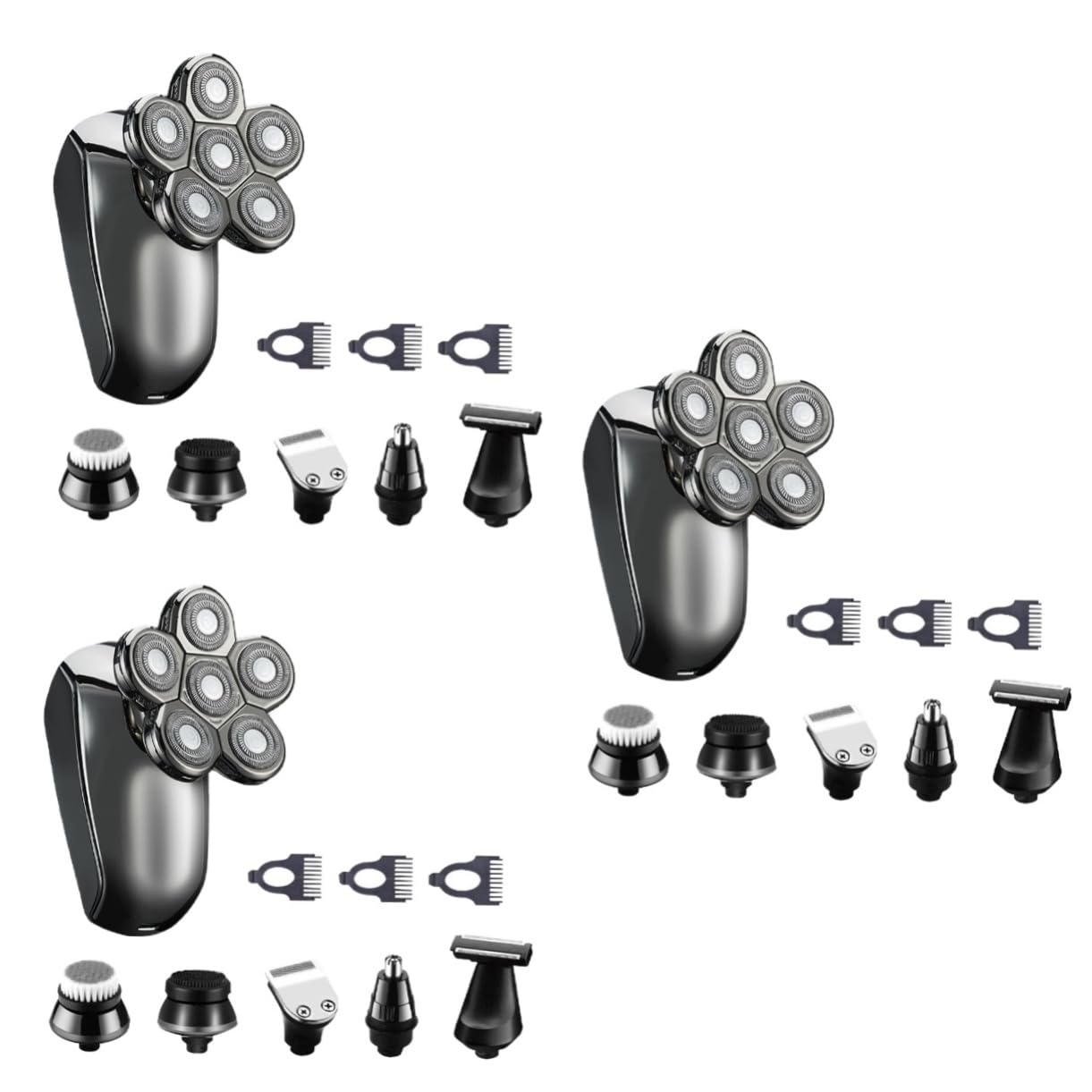 Package Include 3 x machine body 3 x 6D razor head 3 x cleaning brush 3 x English instruction Features - Material: ABS electric shavers for men. - Voltage: 100- Convenient Razor. - Note: Charge for 1.5 hours and use for 90 minutes Travel Shaver. - Size: 18.70X11.20X7.50cm/7.35X4.40X2.95inch Beard Razor. - Power: 5W foil shaver. - Color: Silver Beard Trimmer. - Waterproof structure, which is practical and reliable Rechargeable Electric Razor. - A more comfortable feel, and the design is more suitable for one-handed control mens razors for shaving. - Lightweight and easy to carry, so you could take it for travel body shavers for men. - Adoption of high grade material, sturdy and durable for long-term use Six Heads Shaver. - High-quality and , high performance mens shaving kit. Goods Information men body trimmer USB rechargeable design, convenient and safe to use.Rechargeable Razor This product is an electric razor, made of high grade material, high-quality and durable.trimmer for men Electric razor is practical, it saves your time and labor.shave kit for men A good helper for male shaving
