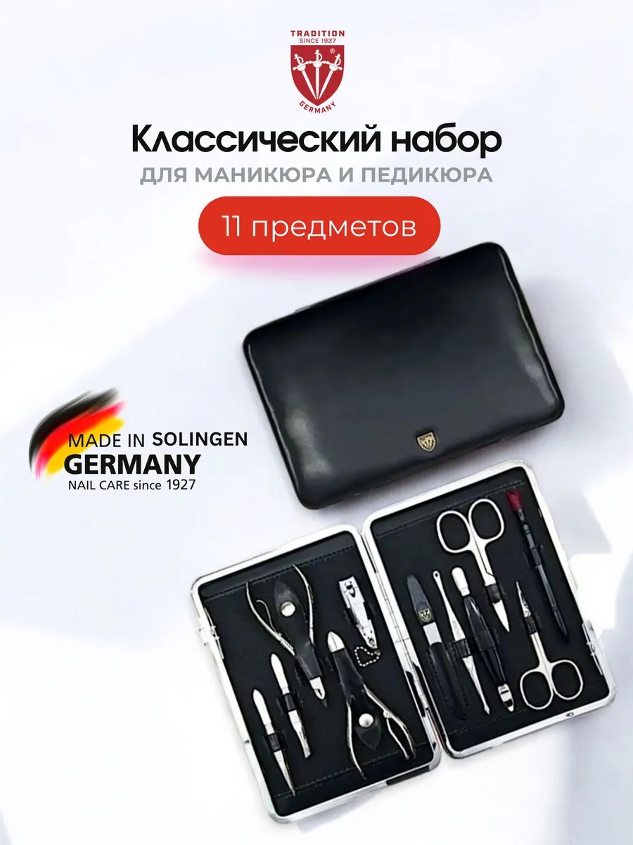 Откройте для себя маникюрный набор 58380 MC N 3 SWORDS (Германия). Этот профессиональный комплект включает 11 высококачественных инструментов, упакованных в стильный черный футляр из гладкой искусственной кожи. Все предметы произведены в Золингене, Германия, из качественной инструментальной стали и заточены вручную, что обеспечивает долговечность и надежность.Набор подходит как для домашнего, так и для профессионального использования, гарантируя легкость и точность в уходе за ногтями. Он станет незаменимым помощником в вашем повседневном уходе.