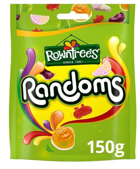 3 x Rowntree's Randoms Sweets Sharing Bag 150g Delicious Tasty And Twisty Treat Gift Hamper For Birthday,ChristmasNutritional Information Typical ValuesPer 100gPer 6 sweetsReference Intake RI Energy1382kJ351kJ8400kJ -325kcal81kcal2000kcal4 Fat0.1gTrace70g 1 of which: saturates0.1gTrace20g 1 Carbohydrate76.4g19.1g260g7 of which: sugars54.6g13.7g90g15 Fibre0.0g0.0g-- Protein4.7g1.2g50g2 Salt0.06g0.01g6g 1 Reference Intake of an average adult (8400kJ 2000kcal)---- Contains approximately 6 servings---- Portions should be adjusted for children of different ages. Safflower, Hibiscus), Natural Flavourings, Acidity Regulators (Sodium Ascorbate, Sodium Citrate), Stabilisers (Carageenan, Locust Bean Gum), Salt, Glazing Agent (Carnauba Wax), Spirulina Concentrate, Invert Sugar Syrup, Colours (Paprika Extract, Beta-Carotene). Ingredients Glucose Syrup, Sugar, Gelatine, Concentrated Fruit Juices (1.3 ) (Apple, Blueberry, Raspberry, Orange, Strawberry, Lemon, Mandarin), Acids (Citric Acid, Malic Acid, Tartaric Acid, Lactic Acid, Acetic Acid), Fructose, Vegetable Oils (Palm, Coconut, Rapeseed), Humectant (Glycerol), Fruit and Vegetable Concentrates (Black Carrot, Carrot,. Deliciously fruity-flavoured chewy sweets A random assortment of shapes, colours, textures and flavours Billions of possible combinations No artificial colours, flavours or preservatives. Have you tried Rowntree's RandomsThey're deliciously fruity gummy sweets in millions of potential random combinations!. These brilliantly random sweets are brought to you by Rowntree's, the makers of the classic Fruit Pastille. The story begins in 1862, when Henry Rowntree bought a cocoa works in York and transformed it into a confectionery company. In 2009 Randoms were born, bringing fruity randomness to the family. Did you know that we don't use artificial colours, flavours or preservatives in Rowntree's sweetsIt's even more reason to enjoy the different flavours, textures, shapes, and colours in every playfully random bag. Let your random side out with every pack of completely unpredictable Rowntree's Randoms! From ping-pong paddles to paintbrushes, snowflakes to saxophones, every bag contains billions of possible combinations - you'll never know quite what you're going to get!. Assorted fruit flavoured jellies.