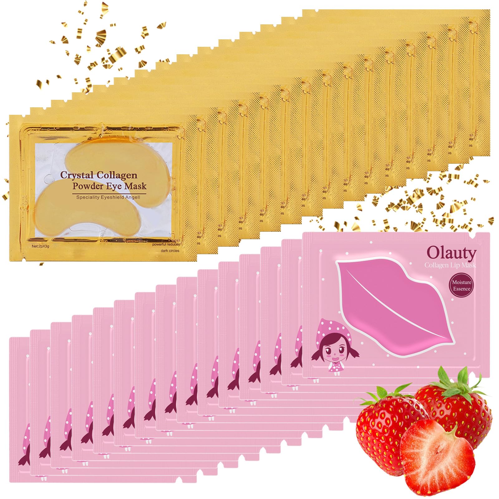 ?Suitable for All Skin Types? This eye masks and lip masks are skin-friendly, safe and gentle for both men and women, and hypoallergenic formulas provide a wonderful skin experienc. ?How To Use?Clean your eyes & lips with warm water, apply the lip and eye mask to the desired area, leave it on for 15-20 minutes (preferably lying down) Remove the lip and eye mask and gently massage the skin around the eyes to allow it to be fully absorbed, no need to cleansi. ?Let You Have Natural Beauty? crystal lip and eye masks containing collagen will dissolve quickly under your body temperature, and the nutrients will be absorbed quickly by your skin, providing nutrients and moisture to the skin around the eyes and lips, and the effect will be better with long-term use!. ?Moisturize Your Skin? The new eye and lip mask set is made of natural and effective plant nourishing formula, deeply repairing the lip skin, rich in minerals and vitamins, locking in moisture, keeping your lip and eye skin soft, fresh, elastic and sparkling charming at all times!. ?30 Pieces Super Value Combo? 15 pcs of little girl collagen crystal lip mask and 15 pcs of 24K gold eye mask match, gentle and nourishing, give your eye & lip skin deeper hydration, effectively improve dull, dry lips, lip lines, lighten dark circles, fine lines, provide double care for lips and eyes.