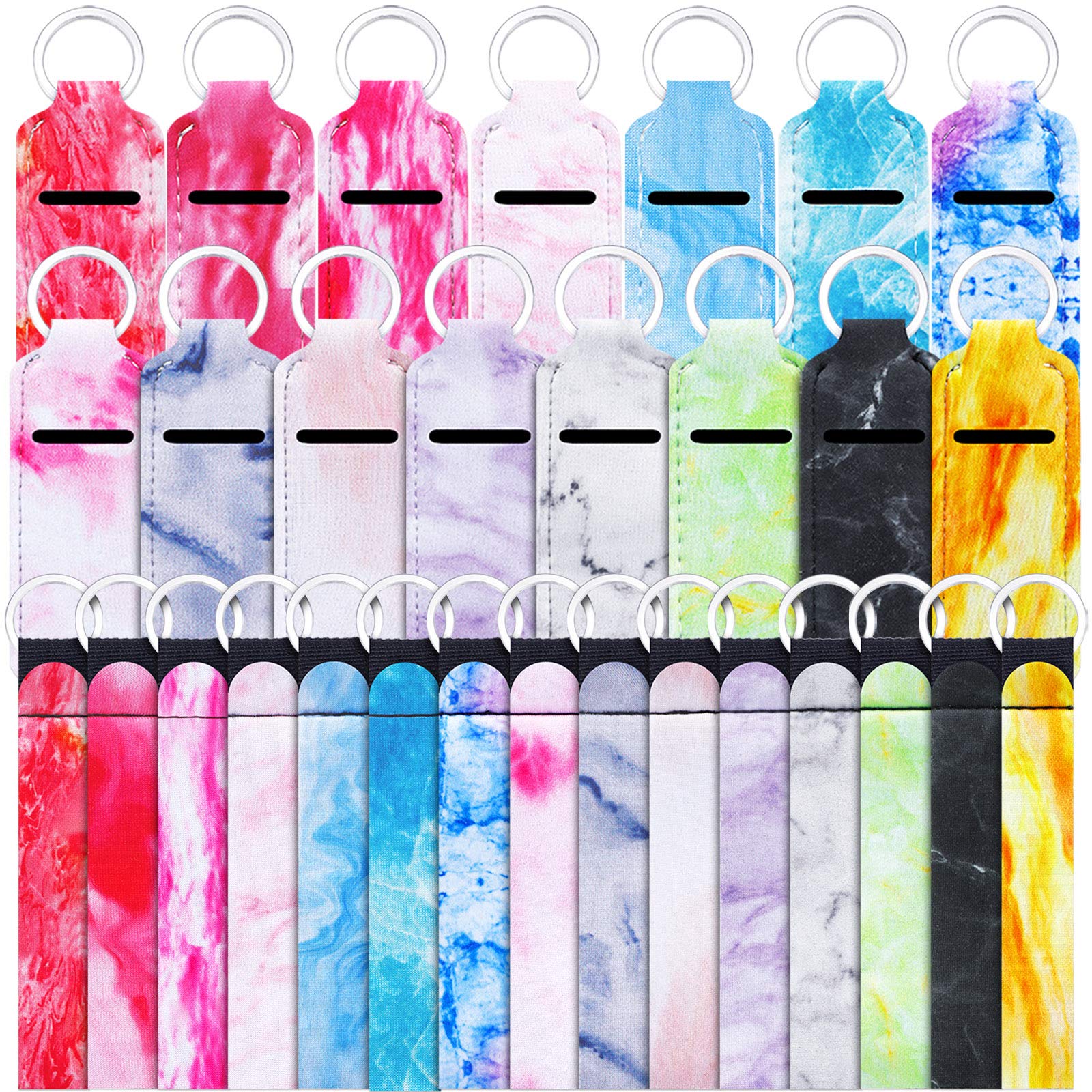 30 Pieces marble chapstick holder keychain chapstick sleeve pouch lipstick holder keychains lip balm keyring holder key chain lanyard wristlet with ring for women travel accessories Features: Convenient and practical: Each wrist lanyard keychain design is brightly coloured, with a classic shape. It looks delicate and compact. It can fasten your lipstick tightly and is equipped with a wristband. These lipstick clips are suitable for most standard size of lipsticks. Please check the size of lipstick before purchase. Our lipstick sets hold your lipstick firmly in place to prevent loss. Nice gift: This neoprene chapstick holder is a great present for your daughter, friend, wife, girlfriend, colleagues, students, teachers, even your own birthday, anniversary, Christmas, etc.. Our products are portable, easy to carry and store, is one of the most suitable things for your own use and present. Specification: Material: neoprene Size: as pictures show Color: as pictures show Package includes: 15 x Marble chapstick holder keychains 15 x Lanyards Note: Please allow slight errors due to manual measurement.Product size: the length and width of each chapstick keyring holder is about 8.8 x 3.8 cm/ 3.5 x 1.5 inches, with a thickness of about 0.25 cm/ 0.1 inch; The wristband is about 12.5 cm/ 5 inches long, it is suitable for lipsticks with a diameter of 2 cm/ 0.78 inch; The handle is compact, easy to carry and store; Please check the size of the lipstick before purchase. Nice gift: lipstick holder key chain is a great gift for your daughter, friend, wife, girlfriend, colleagues, students, teachers, and even your own birthday, anniversary, Christmas, etc.; Our product is portable, easy to carry and store, which is one of the most suitable gifts for your own use and present. Convenient and practical: each chapstick sleeve pouch is designed with bright colors, with classic shape, looks delicate and compact, can hold your lipstick tightly and securely, equipped with a wrist strap; These lipstick clips are suitable for most lipstick with standard size; Our lipstick clip keeps lipsticks together with keys, wallets and backpacks to prevent lipstick from falling off. Reliable quality: our wristlet lip balm holder is made of neoprene material, which is soft and durable; It is soft and gentle to your lipstick and not easy to fade or wear; It can be applied repeatedly after washing and drying, can serve you for longer time; Exquisite design with style and function. Products include: with 15 pieces of colorful chapstick holder keychains and 15 pieces of lanyards; It is very convenient for you to DIY and hang these keychains on your bag, various colors match different accessories for you; You can choose the right key or bag for you or send to your friends.