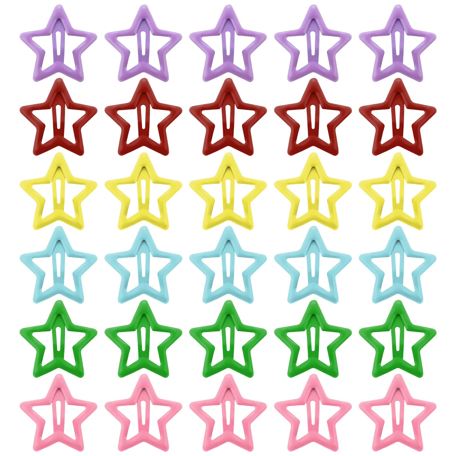 30 Pieces Metal Snap Hair Clips Star Hair Clips No Slip Hair Clips Cute Fun Star Designs Colorful Star Hair Barrettes Star Hair Accessories for Women Teens Girls Kids Toddlers