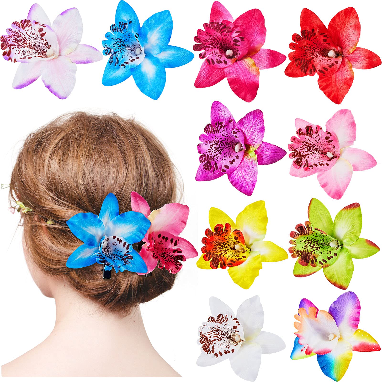 Hula Girl Hibiscus Color Assorted Flower Island Theme Hair Clips Event Decoration Supplies (12 Pack)