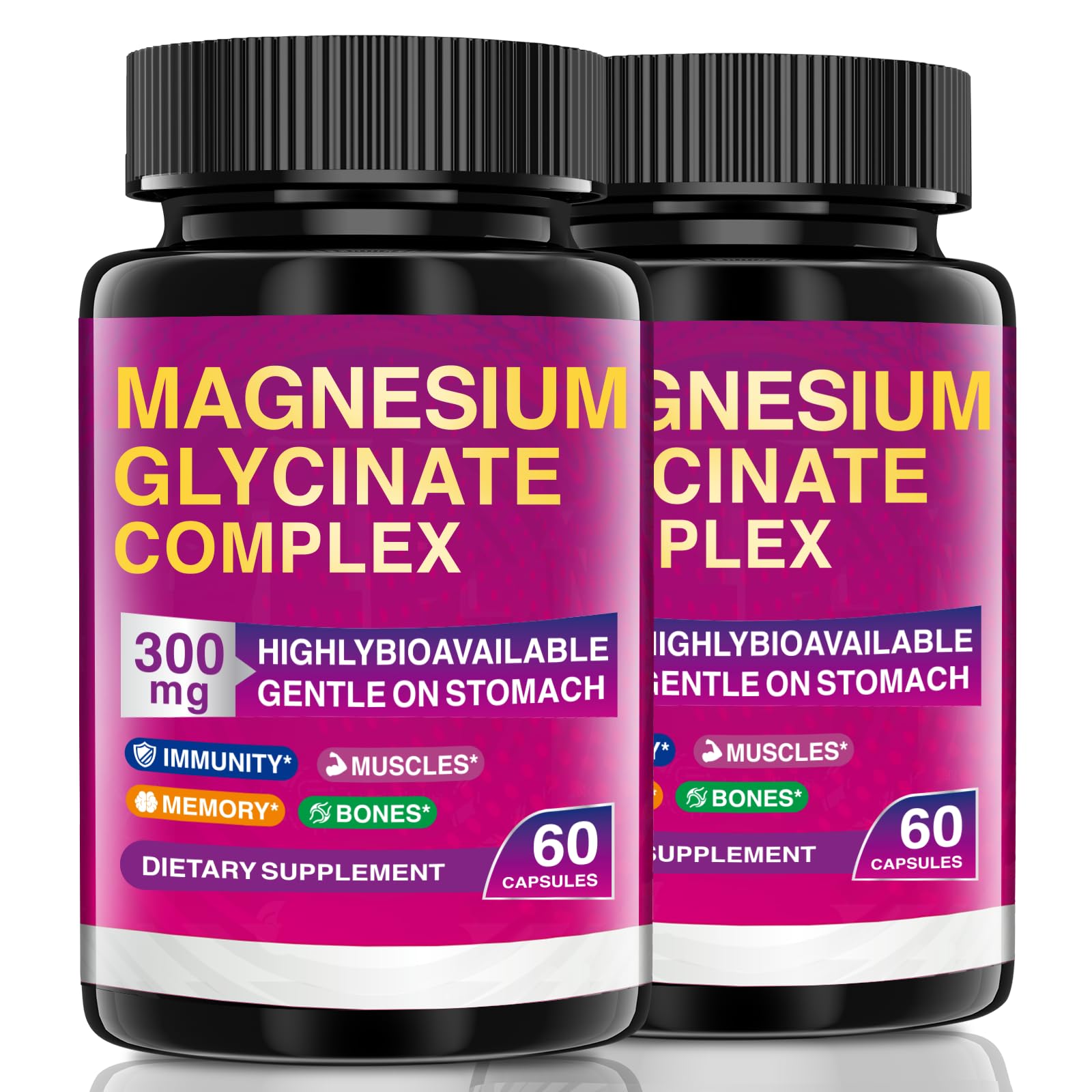 300mg Magnesium Glycinate 60 Vegetarian Capsules High bioavailability and Stomach Friendly Formula Essential Mineral Supplement for Easy Absorption Muscle Sleep and Heart Health