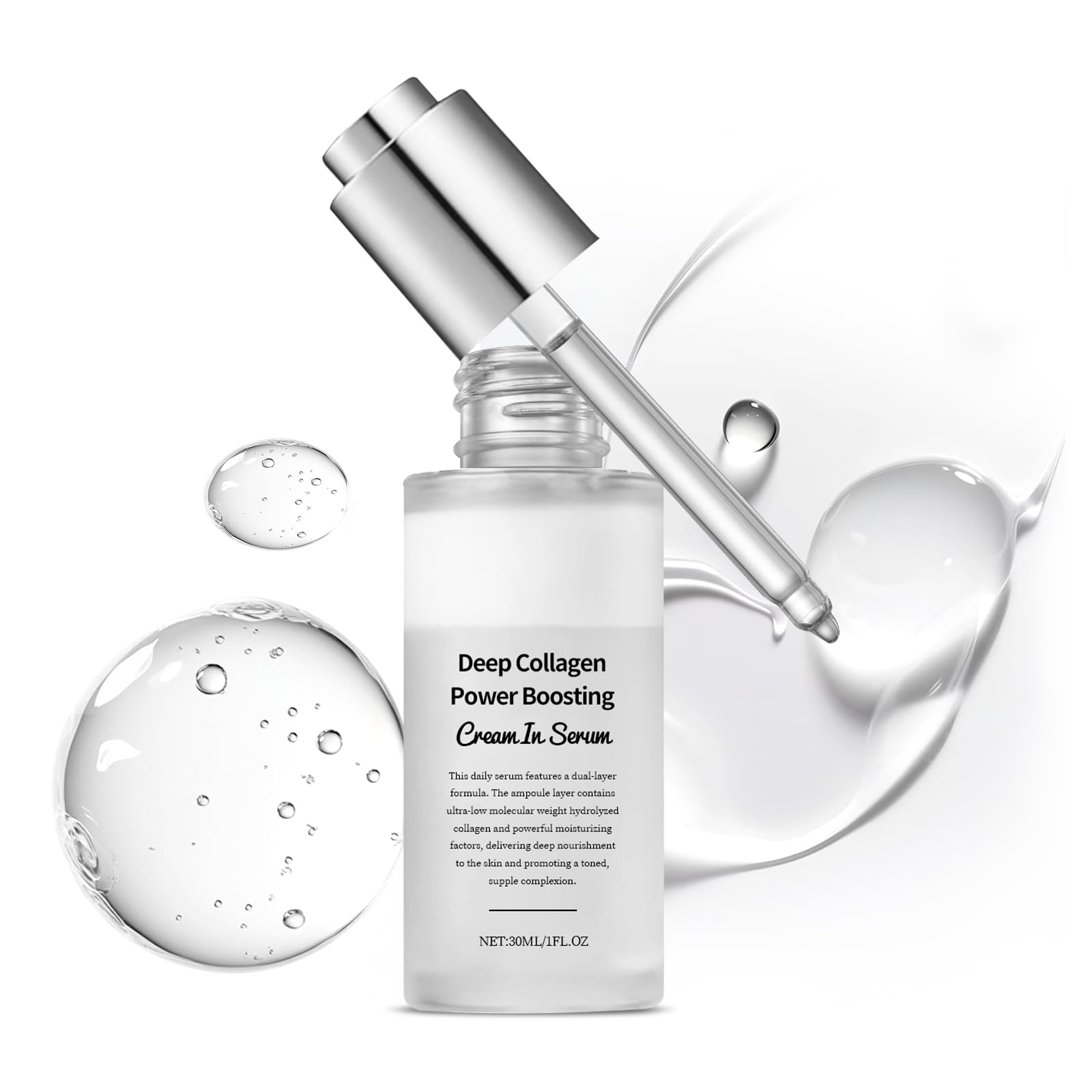 Clean Non-Comedogenic:Vegan, cruelty-free, and free from parabens sulfates. Fast-absorbing, non-greasy formula safe for sensitive skin. Can be used as an overnight mask or makeup primer. Multi-Targeted Firming Solution:Formulated with botanicals and antioxidants to help tighten skin contours, minimize pores, and even skin tone. Ideal for mature or stressed skin. 72-Hour Hydration Support:With 3 molecular weights of hyaluronic acid, it locks moisture into skin layers—reducing dryness and flakiness for dewy, soft skin throughout the day. Wrinkle Softening Care:Targets crow's feet, forehead lines collagen nourishes skin elasticity for a supple, smooth look. Cream-Serum Dual Action Collagen Serum:Lightweight collagen facial serum combines cream nourishment serum penetration, with hydrolyzed collagen hyaluronic acid to support plump skin and long-term firmness.