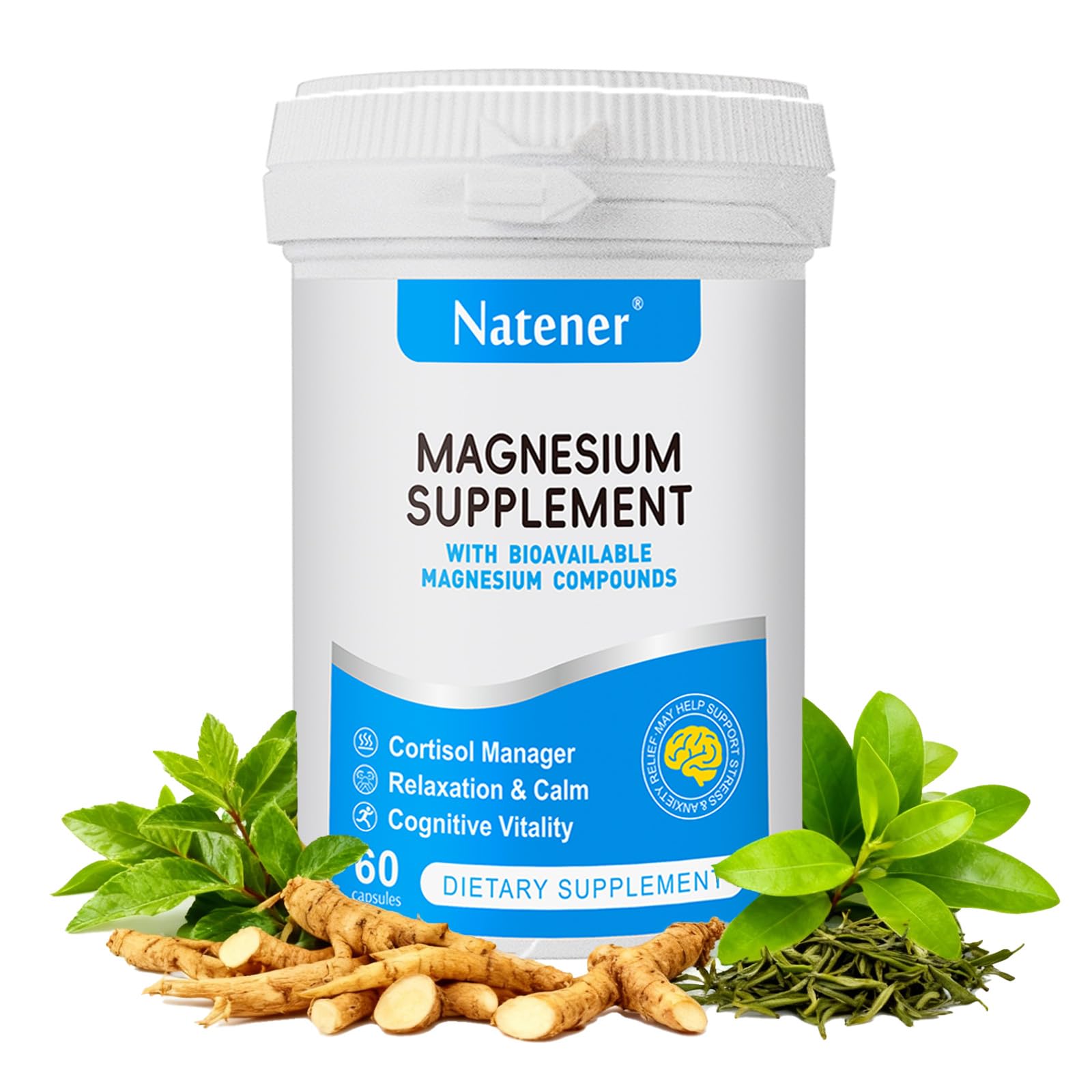 Quality You Can Trust: Natener is committed to purity and efficacy. This supplement is Non-GMO Project Verified, gluten-free, and contains no fillers or artificial preservatives. Keep out of reach of children. Pregnant or nursing women, and anyone taking medication, should consult a healthcare professional before use. Discontinue use and consult a professional if any adverse reactions occur. These statements have not been evaluated by the Food and Drug Administration. This product is not intended to diagnose, treat, cure, or prevent any disease. For Demanding Lifestyles: Natener's Magnesium Complex is crafted for individuals with active lives, such as professionals, students, and those who spend significant time online, looking for nutritional support to help maintain mental sharpness and overall well-being throughout the day. Just two capsules daily. Promote Calmness Clarity: Ashwagandha and L-Theanine are included to help promote a sense of calm and relaxation. Magnesium is known for its role in supporting a healthy nervous system, while Alpha GPC is a precursor to acetylcholine, a key neurotransmitter involved in focus and memory processes. Targeted Brain Mind Support: Our unique formula combines four bioavailable forms of Magnesium (Glycinate, Threonate, Citrate, Malate) with Alpha GPC, Ashwagandha, and L-Theanine. This blend is designed to provide comprehensive support for cognitive function and mental well-being during demanding times. Groundbreaking research in Cell (Lesuis et al., 2024) reveals that stress cripples memory precision by 300 – hijacking the brain's threat filters in the lateral amygdala. This causes neutral events to trigger false alarms, draining focus and mental clarity.Similar products often ignore the impact of stress!.