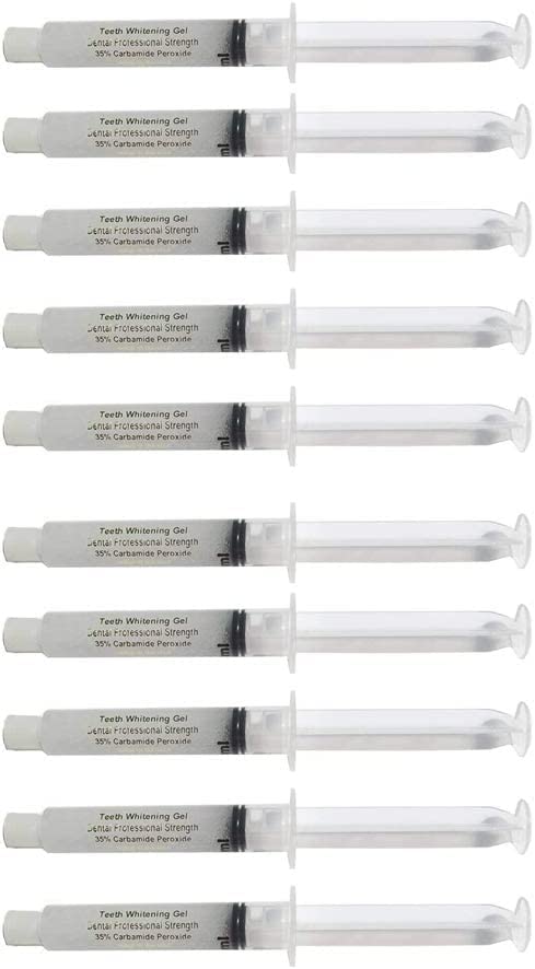 35% Carbamide Peroxide 10 Syringes (10 ml) of Teeth Whitening Gel - (2) LED Accelerator Light - 4Mouth Trays -2 Shade Guide Instructions