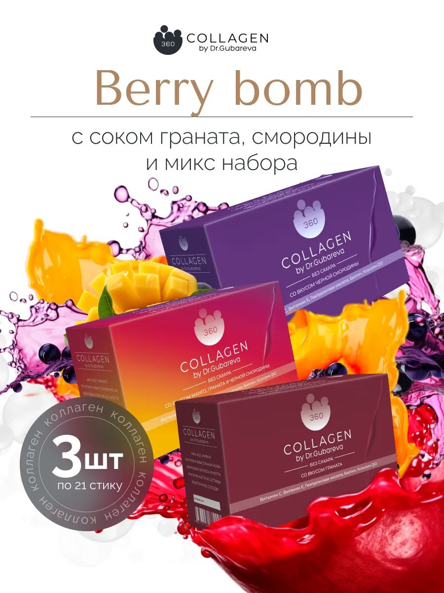 360 Collagen by Dr. Gubareva Набор пептидного коллагена желе в стиках с соком граната, смородины и микса вкусов 360 by dr. Gubareva
