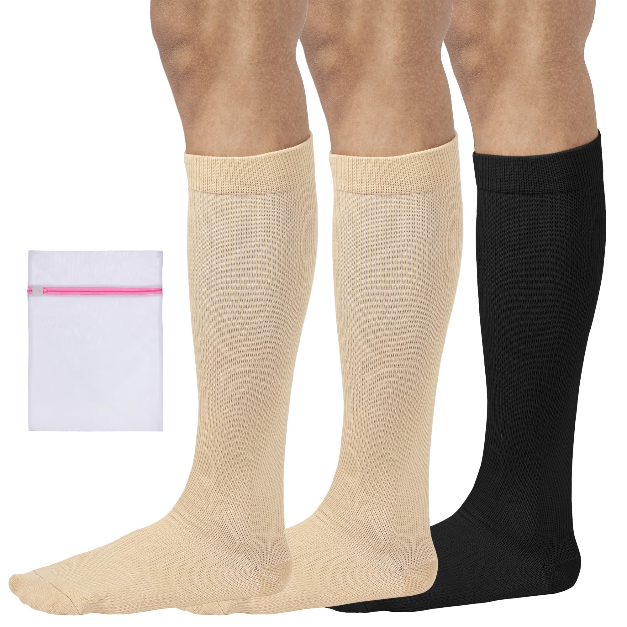 360 RELIEF - Flight Compression Socks Supports | Blood Circulation Travel Work 3XL 3Pairs-Beige
