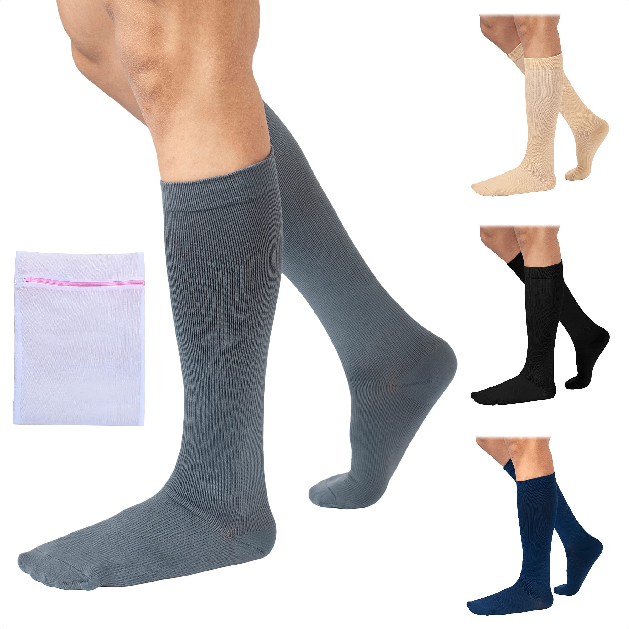 360 RELIEF - Flight Compression Socks Supports | Blood Circulation Travel Work 3XL 2Blue+1Grey