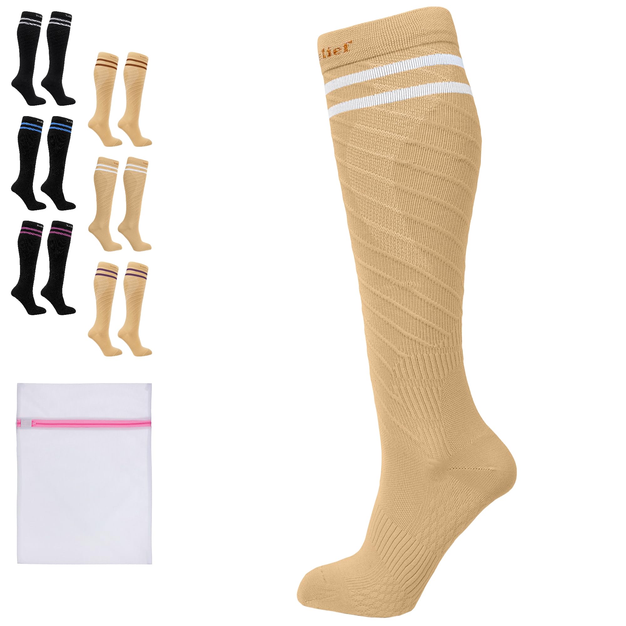 360 RELIEF - Flight Compression Socks Supports | Blood Circulation Travel Work 3XL 3Pairs-Beige