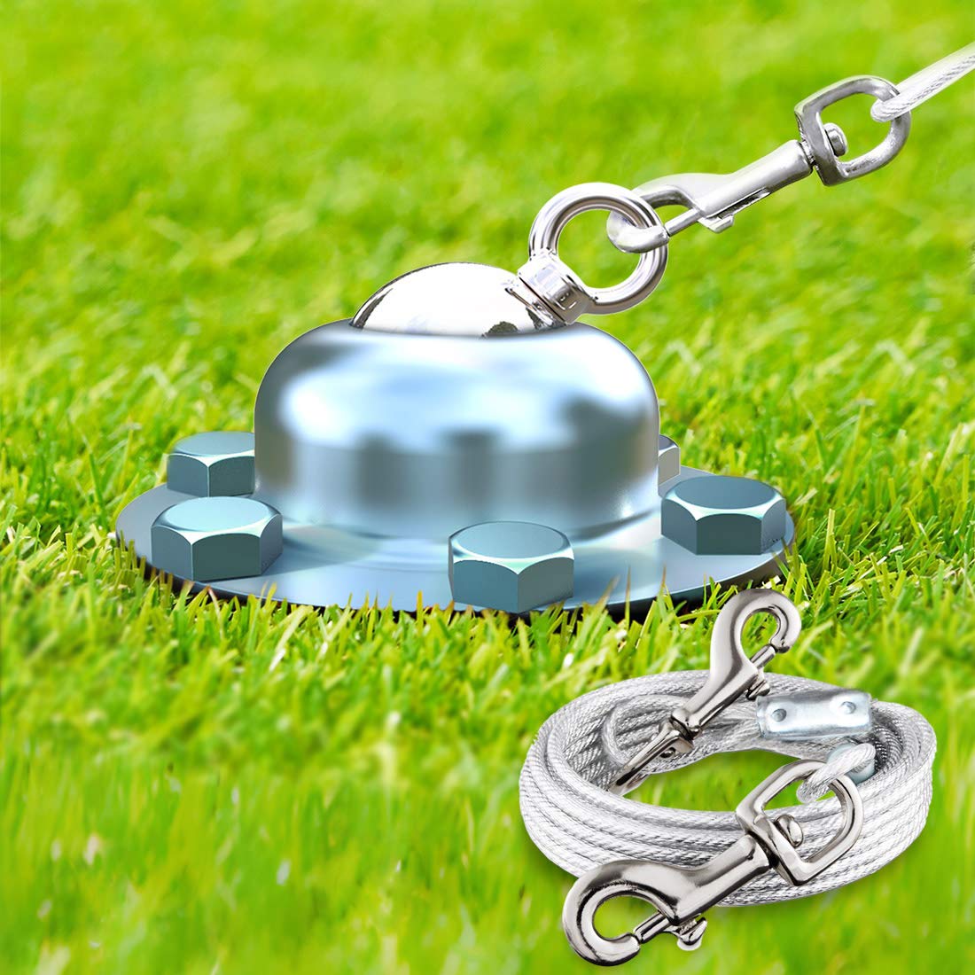 The Pestairs 360 Swivel Tangle Free Pet Tie-Out Stake System keep your dog safe while offer your pup the freedom to play without a fence or barrier system. Are you worrying that your dog will get lost in your backyard or on your camping trip? Or The new dog stake you purchased last week broke again? Or your strong furry friend pulled the dog stake out of the ground and ran away over and over again? If …YES! The Pestairs 360 Swivel Tangle Free Pet Tie-Out Stake System is your best choice: -- Constructed with high quality steel for superior strength and durability, can stand the pets up to 150 lbs, -- Hold 1000 lbs. of pull force, no risk of pulling out of ground, -- Made of heavy-duty steel, durable and unbreakable construction, -- Designed with a Full 360 Degree Swivel Ball, 360 Swivel and Tangle Free, -- Perfect for yard, camping or other environments you need a reliable dog yard stake. -- Suitable for dogs, cats, rabbits, ferrets, goats,. and even ponies! Note: The Dog stake is not suit for Soft Ground and Sandy ground, please choose our another dog tie out cable and stake set if you want it, : B086M9ZHCZ. Copy and paste it into the search bar, you can find it.? Gift for Animal Lovers Lifetime Replacement: Our Heavy Duty Tie-Out Stake System is suitable for dogs, cats, rabbits, ferrets, goats,. and even ponies! We guarantee this pet stake will be one of the best you can find on . So if for any reason you're not completely satisfied with it, we'll refund every penny (or replace it at no cost if there's a problem). "Add to Cart" Now!. ? Easy to Use Easy to carry: Only need a hammer and put the Six 8 inches long bolt anchors into rocky or hard ground to fix the swivel base. This dog anchor system can stand up 1000 lbs of pull force. Of course, you can install this dog tie out stake in a wood deck or concrete floor using proper bolts. The package comes with a box, which you can easily store or bring to the car. ? Unbreakable Construction Weather Proof: The Swivel Base and Bolt Anchors are made of heavy-duty steel, all parts were assembled together by 15 tons of pressure or welding. The zinc-plated or stainless steel materials make the parts rust-resistant and weather-resistant, perfect for all seasons. ? 30ft Dog Tie Out Cable: for small to medium dogs up to 60lbs. Built with smooth vinyl coated aircraft cable, resists tugging, chewing and dragging. the crimp covered cable-ends add 2 stress points serve protection against weakening due to his running and sprinting. The swivel clips add superior strength and durability to keep your dog secure and safe without tangling. Plus, the weather-resistant cable and stake is bright red for superior visibility. ? 360 Swivel Tangle Free: Designed with a Full 360 Degree Swivel Ball, let's your dog freedom to roam without tangle. Even multiple pets simultaneously, and continue to stay tangle free. The loop of swivel base is easy to attach your cable tie-out or leash. And once he's securely clipped on, your dog will be happy to enjoy 360 degree of roaming freedom!. ? Super Value Great Choice: Includes a 30ft dog tie-out cable and stake set. Offers your pup the freedom to play but safe without a fence or barrier system. Perfect for yard, camping or other environments. The stake constructed with high quality steel for superior strength and durability. No Pull Out Of Ground. Stand up to S to XL Dogs up to 150 lbs. Has been tested in stable ground to securely hold 1000 lbs. of pull force (not suit for soft sandy or muddy ground).