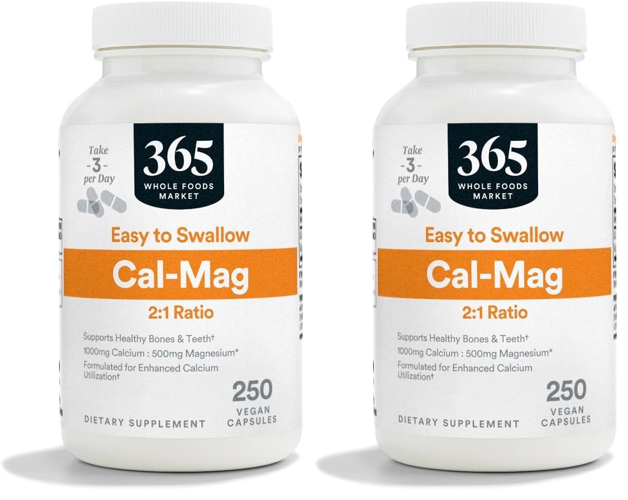 365 by Whole Foods Market Calcium 1000Mg Magnesium 500Mg Easy Swallow 250 Veg Capsules (Pack of 2) 250 Count (Pack of 2)