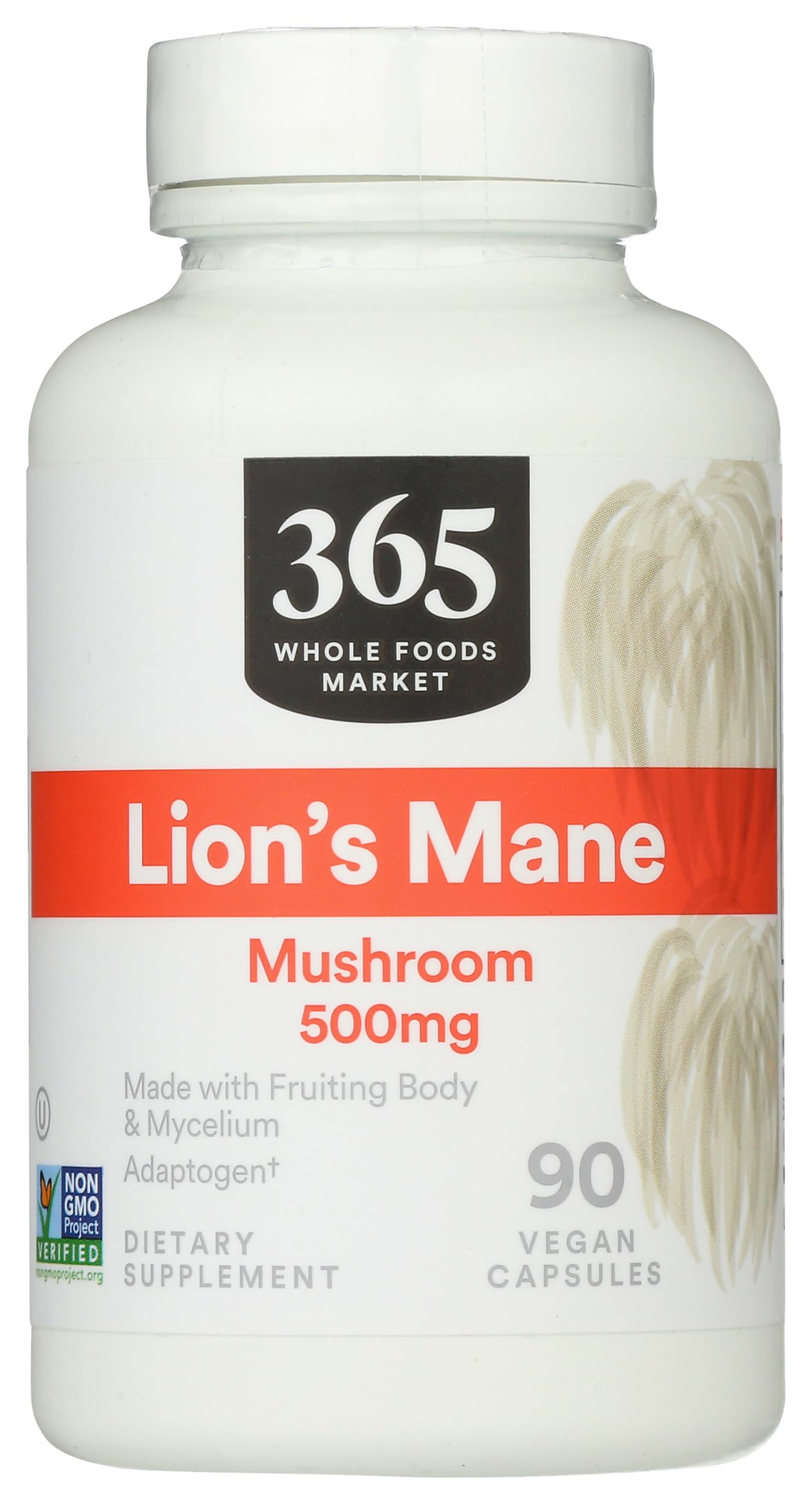 365 by Whole Foods Market Lion's Mane Mushroom 500mcg Vegan 90 Count 90 Count (Pack of 1)