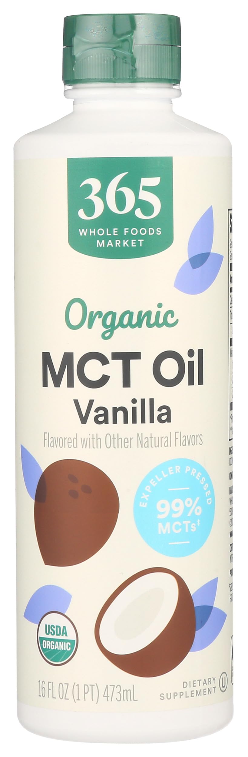Perfect for smoothies, coffee, and baking. Vanilla flavored with other natural flavors. USDA Organic and Non-GMO Project Verified. Made from expeller-pressed organic coconut oil. Contains 16 fluid ounces of organic MCT oil.