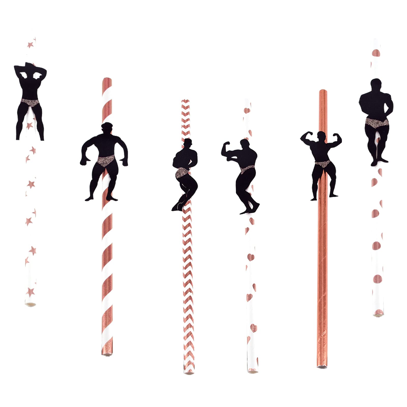 Features: 1. Bachelorette decorations straws made of thick food grade paper, odor free, safe for use. 2. Rose gold patterns, 6 different images of bodybuilder men showing muscle line poses. 3. Not just a drink straw, but also an eye-catching compliment dessert decoration. 4. Good choice for bachelorette parties, bridal showers and girls night out parties, birthday party. Specifications: Material: Paper Color: Rose gold Size: 19.7x0.6cm 7.75x0.24inch Package Included: 36pcs Bachelorette Party Straws?Wide Usage? - These straws is a good choice for bachelorette parties, bridal showers and girls night out parties. Also great for birthday, baby shower, rainbow party and so on. ?No Assemble Need? - The bachelorette straws are 19.7cm 7.75inch long and 6mm 0.24inch diameter. The bodybuilder is pre-sticked on straws, you can use it directly. ?Thick Sturdy? - Design with multiple layers of thick paper, the paper straws are not easy to disintegrate or melt in cold warm liquid for a short time. Perfect for frozen drinks, cocktails, margaritas and more. ?Durable Quality? - The bachelorette party straws are made of thick food grade paper, odor free, safe for use. ?What You Get? - Package contains 6 different dancer men posing, each type has 6pcs, totally 36 pieces bridal shower straws.