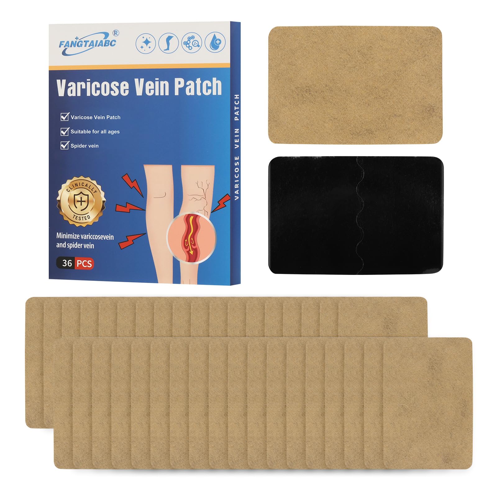 Long-Lasting Varicose Veins Treatment:Each patch delivers continuous support, helping to minimize vein visibility and discomfort for smoother, revitalized legs. Convenient and Easy to Use 36PCS Varicose Vein Patch (2 Pack).Its compact, lightweight design fits into any bag or suitcase. Application Instructions: 1 Gently massage the affected area for a while before applying the plaster to achieve better results,Use 1 -2times a day and persist for 1 months for best results. Varicose Veins Patches: Our Varicose Veins Patches are infused with natural herbal extracts, designed with breathable materials that soothe without skin irritation. Suitable for all people: This varicose vein patch is suitable for people who are sitting or standing in the office for a long time, wear high heels for a long time.