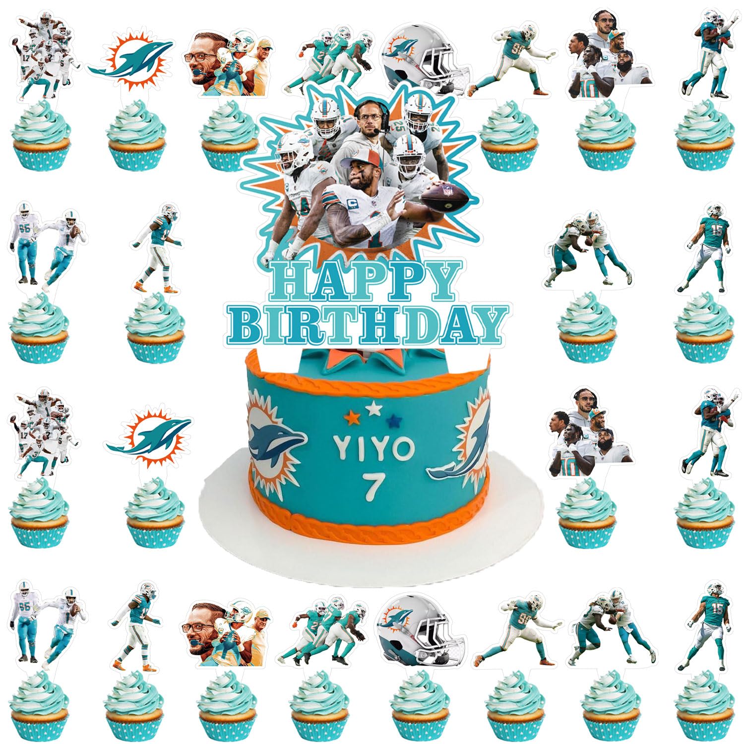 37pcs Miami Football Cake Topper and Cupcake Toppers Set Dolphins Birthday Party Supplies for Miami Soccer Party Decorations