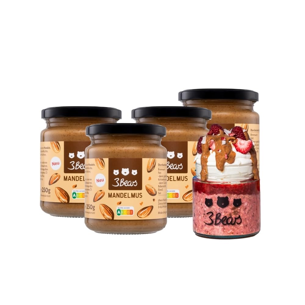 3Bears almond butter 100% roasted nuts gluten-free and vegan creamy and intense in taste 4 x 250 g
