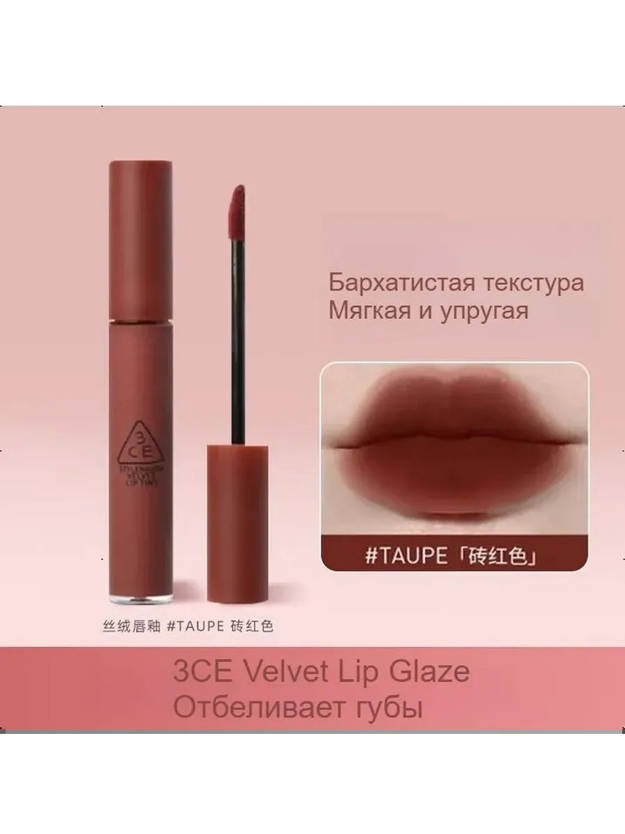 3CE Жидкая матовая помада Velvet Lip Tint, цвет TAUPE (Кирпично-красный)