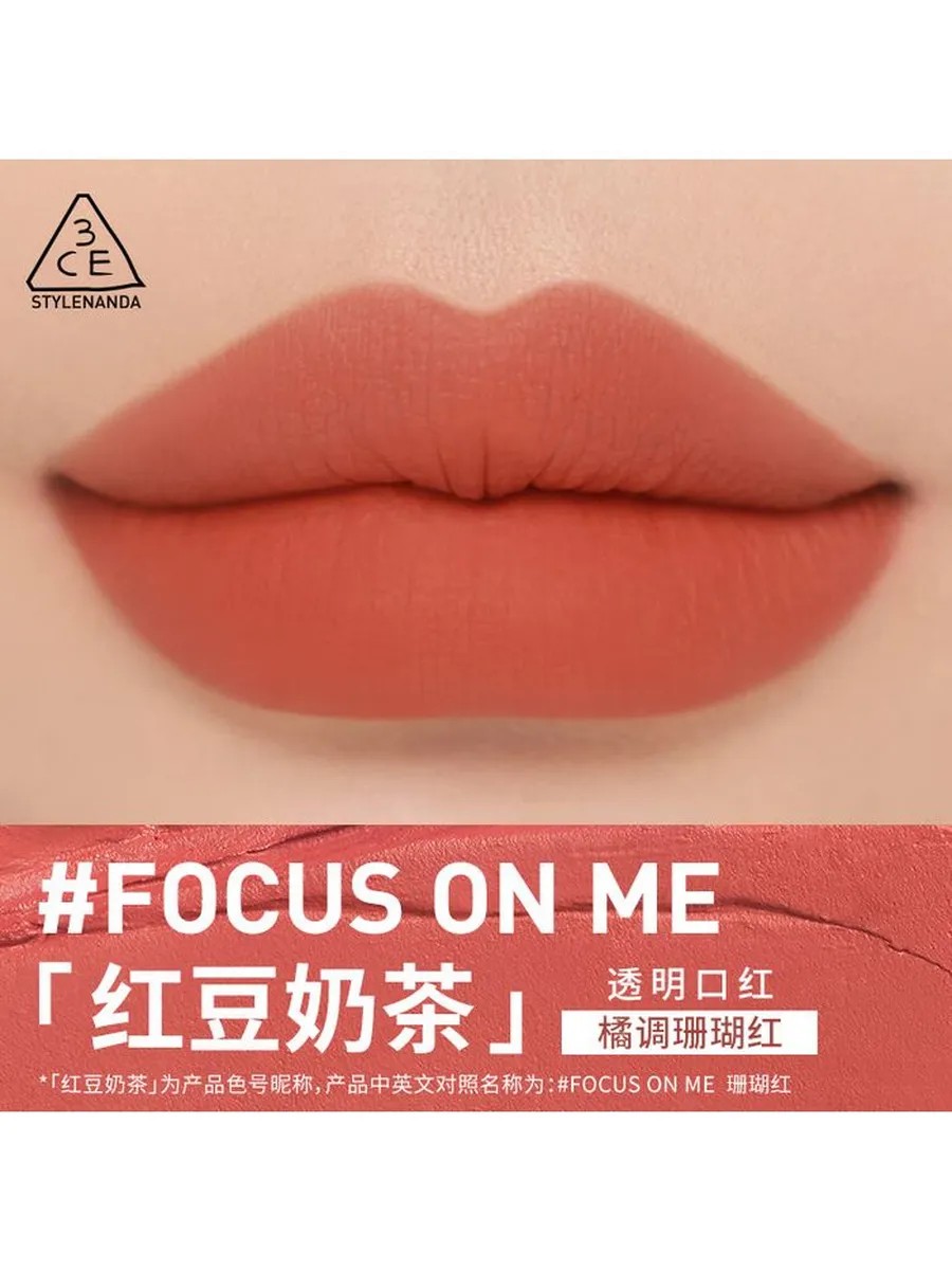 General Information: 3CE Transparent Coral Red Matte Lipstick is a coral red matte lipstick with vintage red tea notes, designed to create a bright and soft matte lip makeup.