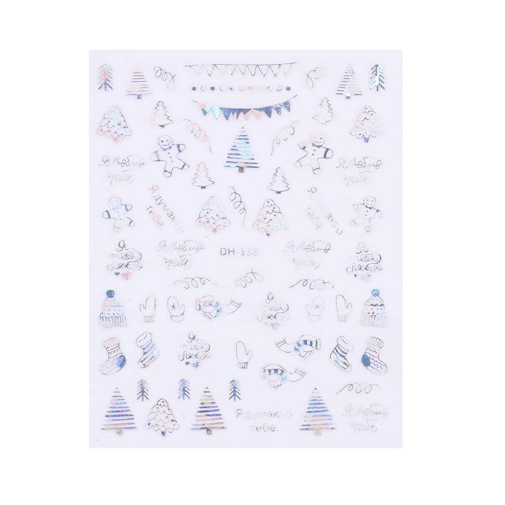 3D Christmas Holographics Silver Manicure Decor Self Adhesive Nail Art Stickers Transfer Decals(188) Style188
