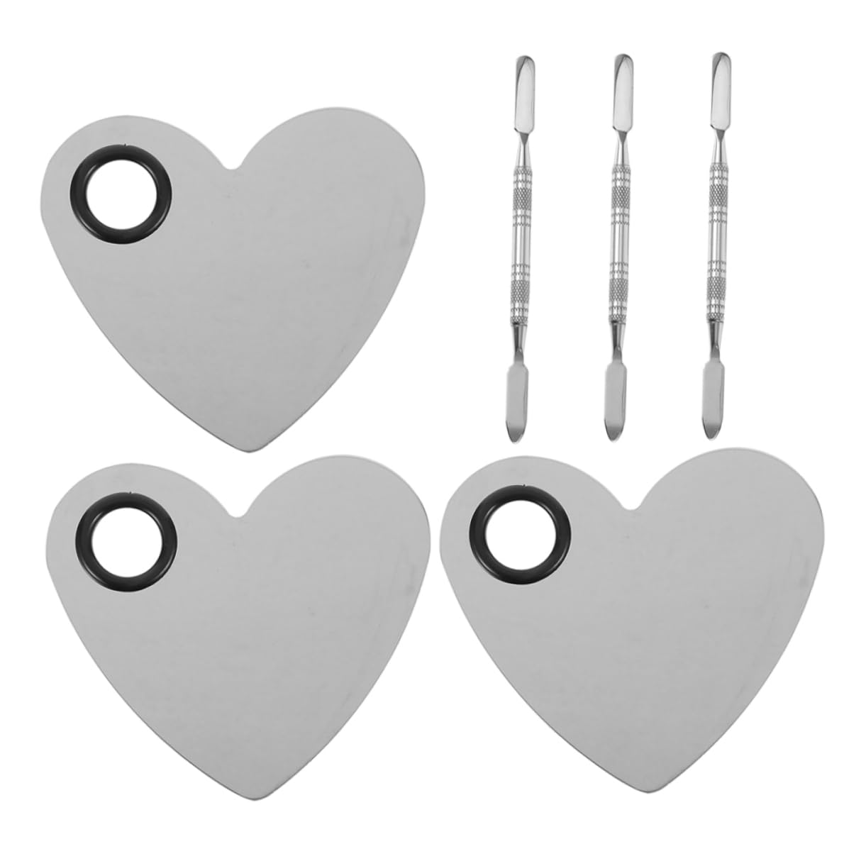 The package includes 3 x Heart-shaped nail art mixing palettes and 3 x Mixing pens. Features: - User-friendly: Designed for easy use, making it suitable for nail artists and personal nail art enthusiasts. - Material: Stainless steel paint mixing palette - Mixing pen set: Includes a set of mixing pens, facilitating easy and precise color mixing from the nail art palette. - Color: Silver manicure accessories - Versatile use: Suitable for a wide range of applications, from nail salons to home use as a makeup color mixing palette. - Size: 11.00 x 11.00 x 0.10 cm 4.32 x 4.32 x 0.04 inches - Elegant heart shape: The heart-shaped design adds a unique and elegant touch to your nail art, making it stand out from the nail polish color mixing palette. -Stainless steel and easy to clean: Made from easy-to-clean metal materials, these nail art mixing palettes are perfect for use with nail art. Product Information: This art palette's elegant design and practical functionality make it a must-have for any beauty routine. Oil Painting Accessories: This heart-shaped nail art mixing palette set is a tool for creating DIY nail and makeup looks. Acrylic Paint Palette: The stainless steel palette offers a smooth, metallic surface for mixing colors, while the included mixing pen allows for precise and detailed application.Complete set of mixing pens: Comes with a set of mixing pens, making it easy to blend different colors for your nail art, makeup tools, and paint color mixing palette. User-friendly: Easy to use, suitable for both nail artists and individuals, oil painting accessories, and makeup color mixing plates. Sturdy and easy to clean: Made from easy-to-clean metal materials, allowing for long-term and practical use. Nail art mixing plates and color pens. Elegant heart-shaped design: The heart-shaped design adds a touch of elegance to your nail art, making it unique and attractive. Makeup palette and makeup tool. Heart shape: The heart-shaped design is suitable for creating distinctive and elegant nail art. Salon color trays and nail art palettes.Le forfait comprend 3 x Palette de mélange pour nail art en forme de cœur 3 x Stylo mélangeur Caractéristiques -Convivial : conçu pour une utilisation facile, ce qui le rend adapté aux artistes des ongles et aux supports à ongles à usage personnel pour peindre les ongles. -Matériau : palette de mélange de peinture en acier inoxydable - ensemble de stylos mélangeurs : comprend un ensemble de stylos mélangeurs, facilitant un mélange de couleurs facile et précis de la palette de mélange d'ongles. -Couleur : Accessoires de manucure argentés -Utilisation polyvalente : convient à une large gamme d'applications, des salons de manucure à la plaque de mélange de couleurs de maquillage à usage domestique. -Taille : 11,00 x 11,00 x 0,10 cm 4,32 x 4,32 x 0,04 pouces nail art portable -Forme de cœur élégante : le design en forme de cœur ajoute une touche unique et élégante à votre nail art, le faisant ressortir de la palette de mélange de couleurs de vernis à ongles. -Acier inoxydable et facile à nettoyer : fabriqué à partir de matériaux métalliques faciles à nettoyer, ce qui permet d'utiliser des plaques de mélange Nail Art. Informations sur les marchandises Palette d'art Son design élégant et sa fonctionnalité pratique en font un incontournable pour toute routine beauté. Accessoires de peinture à l'huile Cet ensemble de palettes de mélange d'art d'ongle en forme de cœur est un outil pour créer des looks d'ongles et de maquillage DIY. Palette de peinture acrylique La palette en acier inoxydable offre une surface lisse et métallique pour mélanger les couleurs, tandis que le stylo mélangeur inclus permet une application précise et détailléeEnsemble complet de stylos mélangeurs : livré avec un ensemble de stylos mélangeurs, ce qui facilite le mélange de différentes couleurs pour votre nail art, vos outils de maquillage, votre palette de mélange de couleurs de peinture. Convivial : facile à utiliser, convient aussi bien aux artistes des ongles qu'aux particuliers, accessoires de peinture à l'huile, plaque de mélange de couleurs de maquillage. Robuste et facile à nettoyer : fabriqué à partir de matériaux métalliques faciles à nettoyer, ce qui permet une utilisation à long terme et pratique, plaques de mélange pour nail art, stylo de couleur. Design élégant en forme de cœur : le design en forme de cœur ajoute une touche d'élégance à votre nail art, le rendant unique et attrayant, palette de maquillage, outil de maquillage. Forme de cœur : le design en forme de cœur est adapté pour créer un nail art distinctif et élégant, des plateaux de couleurs pour salon, une palette de nail art.3ensembles Palette Ongles Nail Art Palette Mélange Peinture Plaque Couleur Ongles Mélange Art