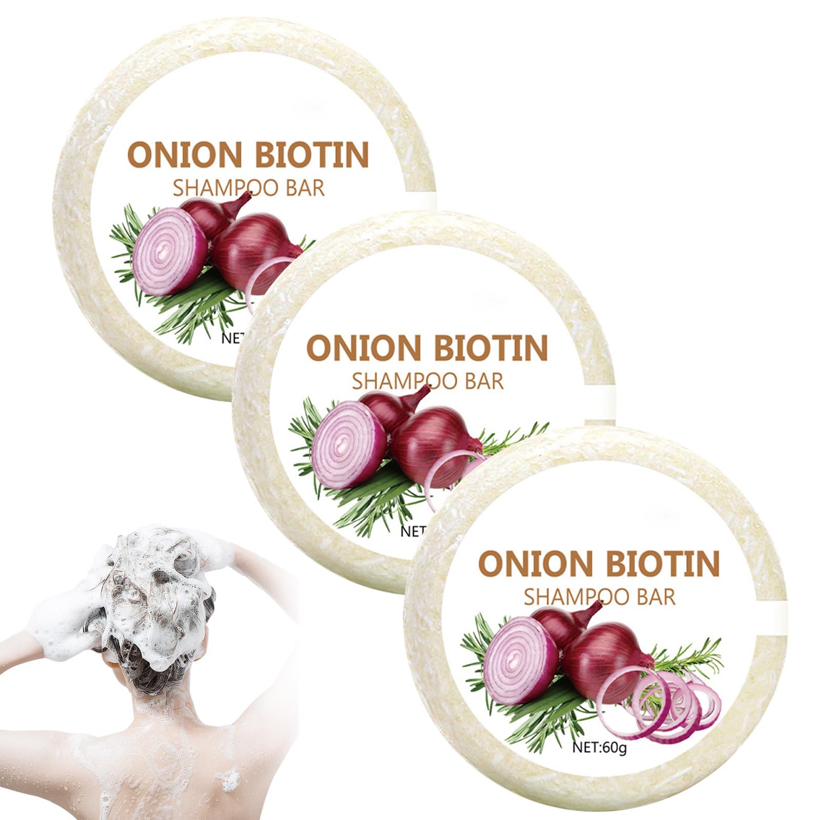 Color: As the picture shows (Due to the difference between different monitors, the picture may have a little color difference. Please make sure you don't mind that before ordering, thanks! Packaging weight: 70g. Package size: 6.2 x 6.2 x 2.6cm (Please allow 1-3mm error due to manual measurement. Please make sure you don't mind that before ordering. INGREDIENTS Onion SAFETY WARNING Do not bring into contact with the eyes See morePractical and environmentally friendly: the compact travel size (solid size) saves plastic waste, is easy to transport and can be stored in the bathroom to save space, perfect for on the road or at home. Hair-enhancing effects: the creamy foam gives the hair natural volume, reduces frizz and leaves a clean, well-groomed result with long-lasting freshness. Natural hydration: enriched with plant extracts, the shampoo block provides intensive hydration, gives the hair shine and suppleness and makes it easier to comb - without aggressive chemicals. Gentle formula with natural ingredients: the combination of onion and rosemary extracts supports balanced scalp health and leaves a refreshing feeling, ideal for daily hair care. Thorough cleansing and care: The onion-rosemary shampoo block deeply cleanses the scalp and gently removes excess oil, while at the same time caring for brittle hair - suitable for all hair types and sensitive scalps.3PC Onion Biotine Shampoo Bars, ui Rosemarin Shampoo, diepe reiniging en hydratatie, glanzend en gezond haar, geschikt voor alle haartypes Kleur: zoals op de afbeelding (vanwege het verschil tussen verschillende monitoren, kan de afbeelding een klein kleurverschil hebben. Zorg ervoor dat je daar niets tegen hebt voordat je bestelt, bedankt! Verpakkingsgewicht: 70 g. Pakketgrootte: 6,2 x 6,2 x 2,6 cm (houd rekening met een foutmarge van 1-3 mm als gevolg van handmatige meting. Zorg ervoor dat je daar niets tegen hebt voordat je bestelt. INGREDIËNTEN Onion VEILIGHEIDSWAARSCHUWING Niet in contact brengen met de ogen Meer bekijkenPraktisch en milieuvriendelijk: het compacte reisformaat (vast formaat) bespaart plastic afval, is gemakkelijk te vervoeren en ruimtebesparend in de badkamer op te bergen, perfect voor onderweg of thuis. Haarverbeterende effecten: het romige schuim geeft het haar natuurlijk volume, vermindert kroesheid en laat een schoon, verzorgd resultaat achter met langdurige frisheid. Natuurlijke hydratatie: verrijkt met plantaardige extracten geeft het shampooblok intensieve hydratatie, geeft het haar glans en soepelheid en maakt het gemakkelijker te kammen – zonder agressieve chemicaliën. Zachte formule met natuurlijke ingrediënten: de combinatie van uien- en rozemarijnextracten ondersteunt een evenwichtige hoofdhuidgezondheid en laat een verfrissend gevoel achter, ideaal voor de dagelijkse haarverzorging. Grondige reiniging en verzorging: het ui-rozemarijnshampooblok reinigt de hoofdhuid diep en verwijdert voorzichtig overtollige olie, terwijl hij tegelijkertijd broos haar verzorgt – geschikt voor alle haartypes en gevoelige hoofdhuid.
