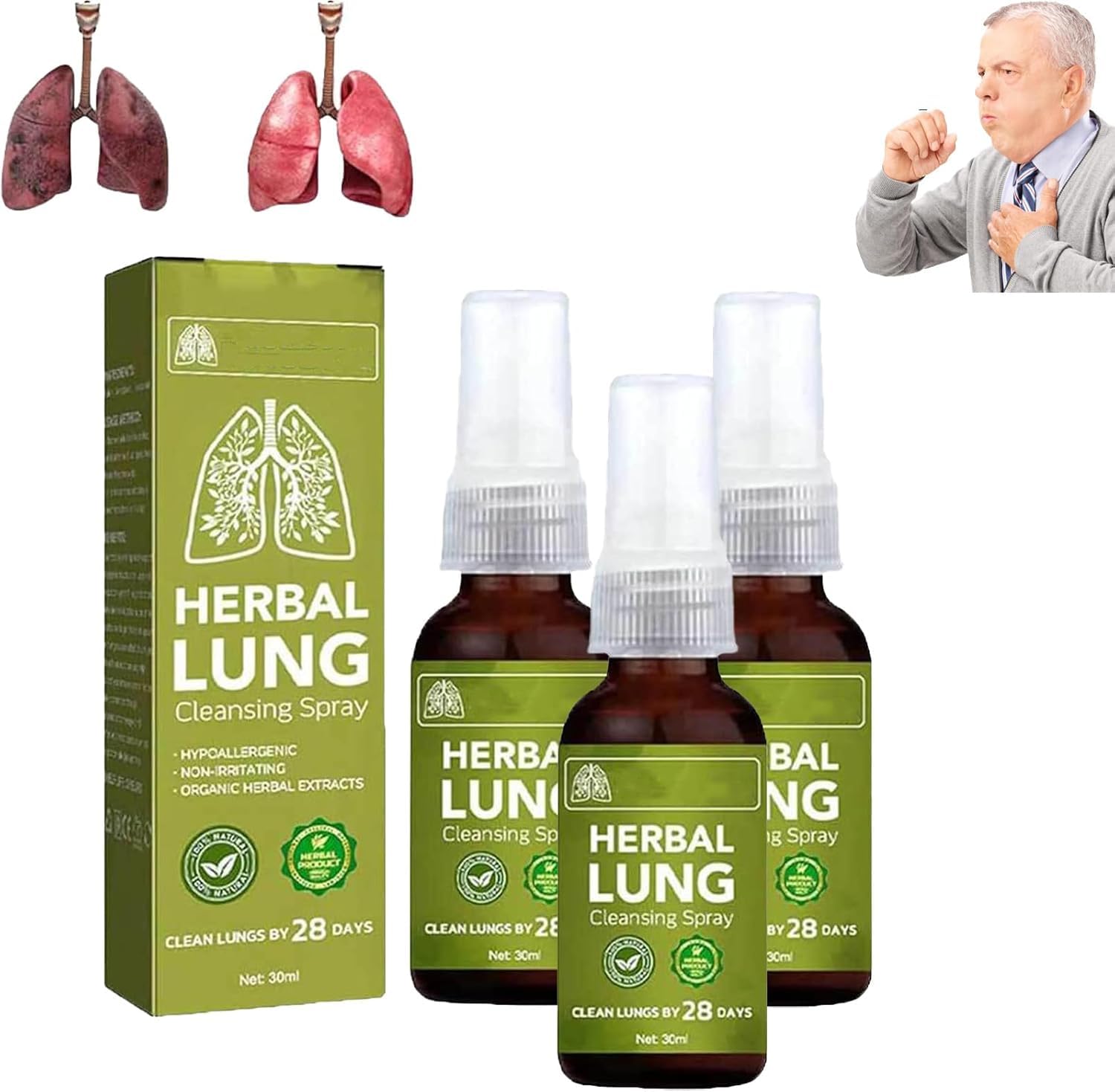 How to use ---- 1. Shake the bottle gently to ensure that the herbal ingredients are fully mixed. 2. Spray directly into the mouth, aiming at the back of the throat, so that the mist can fully reach the respiratory system. 3. Take a deep breath to ensure that the mist fully covers the respiratory tract. Use as needed throughout the day. Non-irritating ---- Rich in powerful antioxidants, you can enjoy fresh air and clear breathing. Deep Penetration ---- BreathDetox Herbal Spray is especially suitable for people who have been exposed to dust. Natural Herbs ---- Contains 7 natural plant extracts, a powerful combination to promote lung fluid secretion. BreathDetox Herbal Lung Clearing Spray ---- Helps to expel phlegm and residue within 2 hours and unclog the respiratory tract.