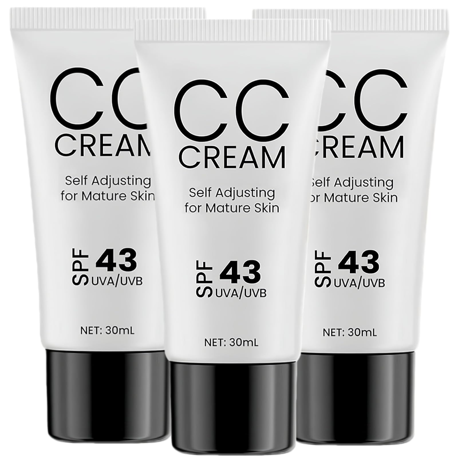 3PCS CC Cream for Older Women, Skin Tone Adjusting Cc Cream Foundation Spf 43, Self Adjusting for Mature Skin, Even Complexion, Conceals, Moisture Anti Aging