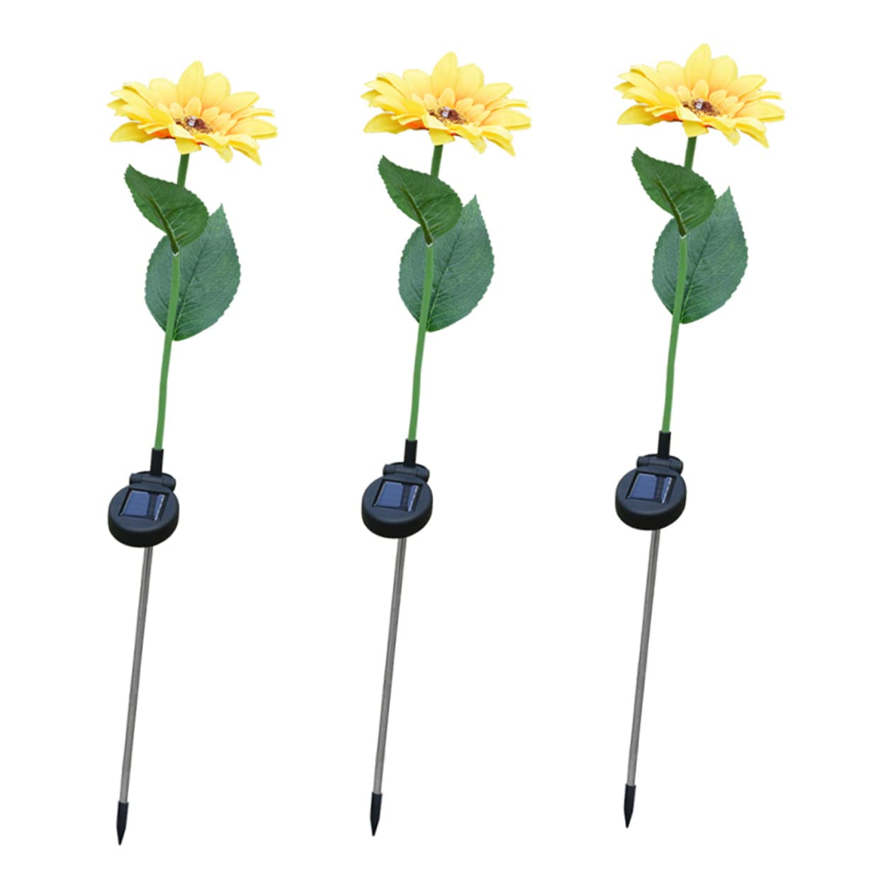 Solar Floor Lights: as as not being soaked into water. It will be functioning in all weathers.Sunflower Stake Light: Both stems and leaves are propped up iron wire which gives ultra flexibility and durability. You can bend the solar flowers stems and leaves into different and style Flowers and leaves will not color fade easily even after being exposed to the sun.Solar Light Outdoor: as as not being soaked into water. It will be functioning in all weathers.Solar Flower Stake Decor: L.