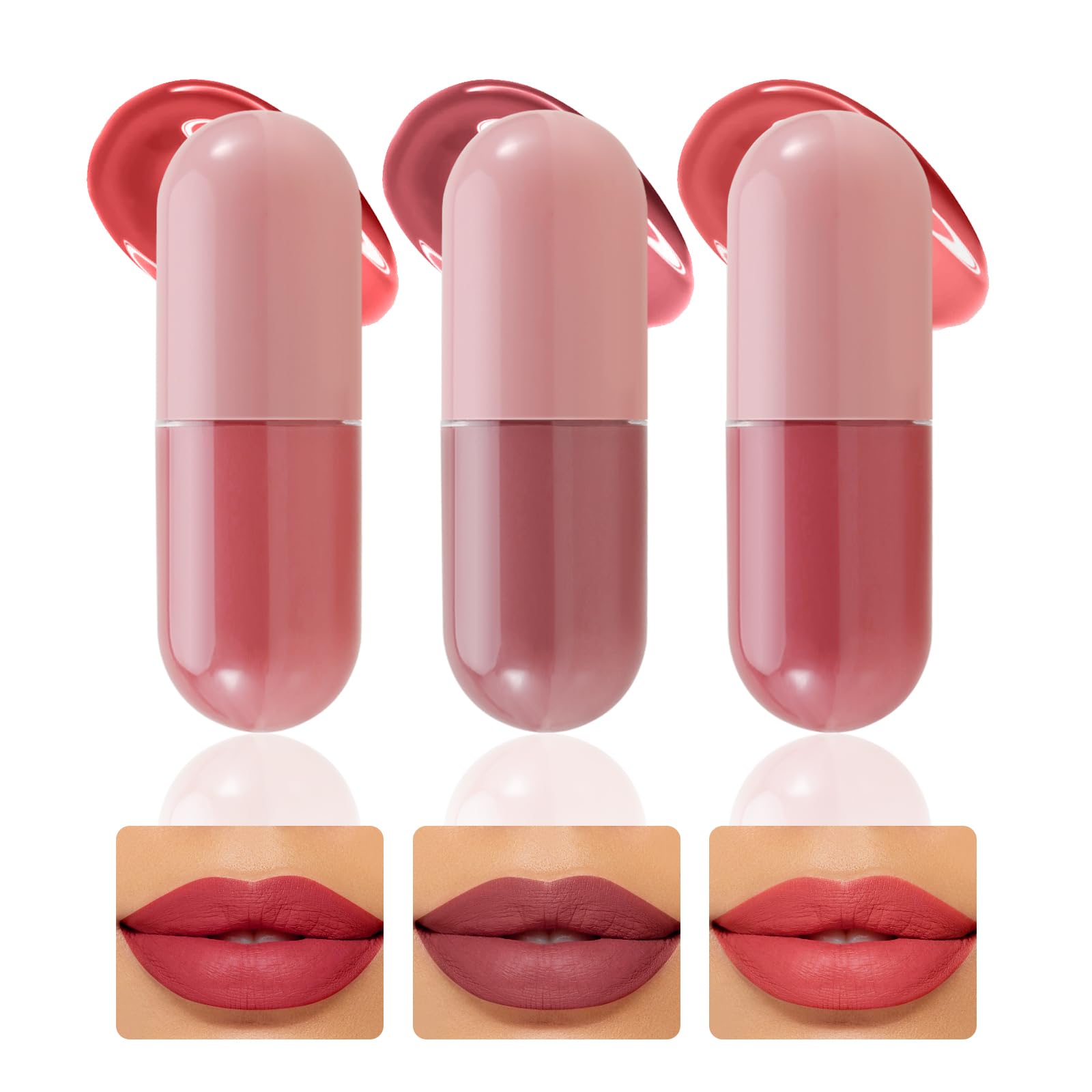 Suitable Present Box: Matte waterproof lip gloss set is designed with mini capsule appearance. The cute appearance and packaging is good for holiday for family and friends, such as birthdays festivals. Long Lasting Lip Gloss: Our lasting mini lipstick has an all-day matte lip stain that won't smudge. Infused with moisturizing, it gives lips a comfortable, hydrating feel without drying them out. Easy to Apply: Liquid lip color makeup with highly pigmented colors, which are bright, silky and buildable. Immediately create a bold matte lip look, making you more beautiful and charming. Creamy Texture: Capsule lip glosses are formulated with extreme comfort. Soft, velvet texture applies smoothly for a velvety matte finish. Suitable for all skin tones, it gives you an instant glow. Mini Capsule Lipstick Set: This is a 3-color matte liquid lipstick, including nude, red, deep red and other matte colors. The lip color combination is enough to satisfy all the needs of a girl.