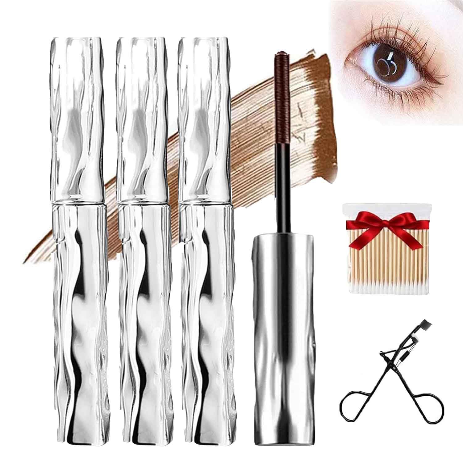 3Pcs Seattleget Mascara Long Thick Lash Mascara Waterproof 3d Curling Eyelash Iron Long Lasting Smudge-Proof No Flaking Tint (Brown SIZE) Brown SIZE