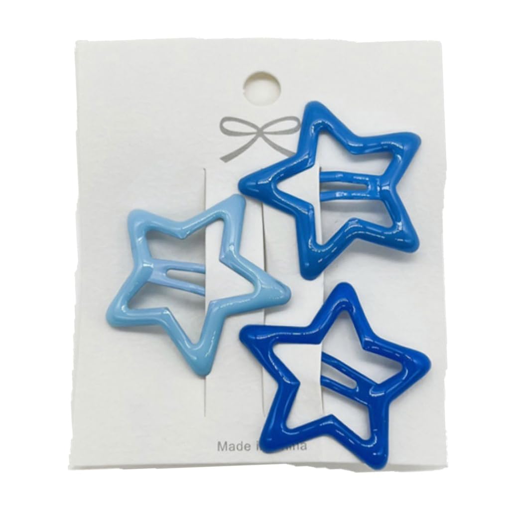 3pieces Cool Hair Clip Star Shape Snap Hairpin Candy Color Hair Clip for Spring Summer Hairpins for Teenagers Children Blue