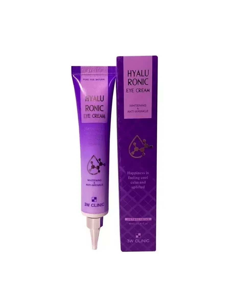 3W CLINIC Крем для век с Гиалуроновой кислотой, 40 мл 1 шт. Крем для кожи вокруг глаз 3W Clinic Hyaluronic Eye Cream содержит гиалуроновую кислоту, которая обеспечивает увлажнение кожи. Данный компонент является натуральным увлажняющим ингредиентом, что предотвращает испарение влаги, заполняет влагу между коллагеном и эластином в коже. Средство предотвращает сухость, благодаря чему кожа вокруг глаз остается увлажненной в течение всего дня.Ниацинамид помогает в борьбе с темными кругами и пигментацией. Аденозин способствует разглаживанию морщин и предотвращает появление новых, улучшает тонус и эластичность кожного покрова. Крем содержит пять видов гиалуроновой кислоты, что делает его незаменимым в процессе увлажнения кожи вокруг глаз. Средство подойдет для тех, кого беспокоит сухость и утрата эластичности кожи вокруг глаз, образование новых морщинок, макияж не ложится из-за мелких кожных заломов. В результате регулярного использования крем увлажнит и напитает нежную кожу вокруг глаз, сделает ее более молодой и здоровой.