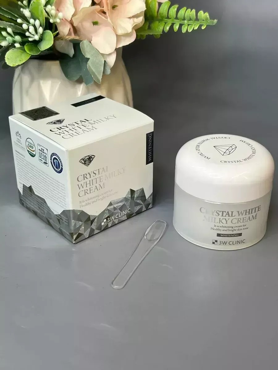 3W Clinic Crystal White Milky Cream — это витаминный отбеливающий крем для выравнивания цвета лица. Он активно увлажняет кожу, борется с пигментными пятнами, осветляет тёмные круги под глазами и замедляет появление морщин.