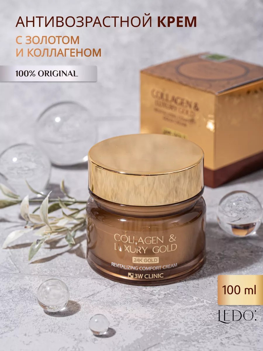 Крем для упругости кожи с коллагеном и золотом Collagen & Luxury Gold Cream от корейского бренда 3W Clinic активно питает и увлажняет, восстанавливает кожный покров, возвращает тонус и естественное сияние.