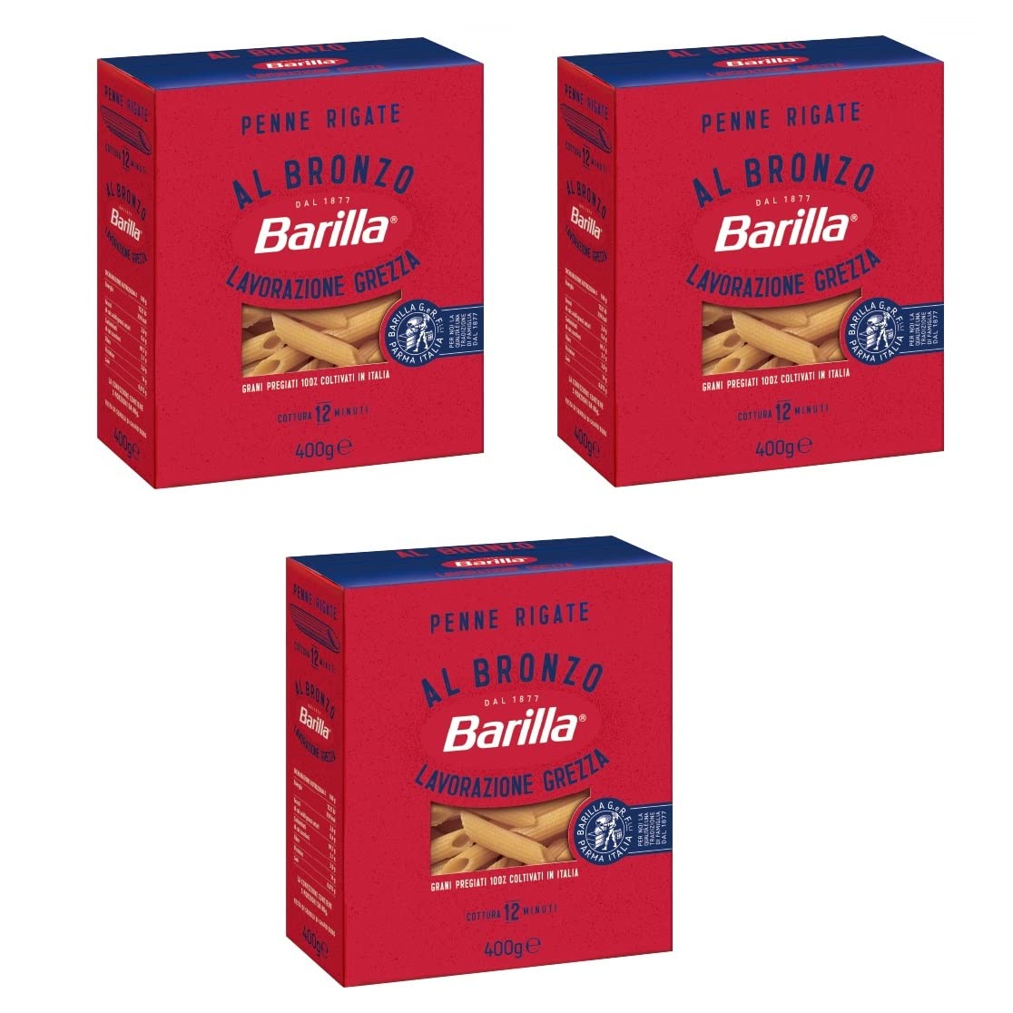 3x Barilla Penne Rigate al Bronzo Bronze drawn Pasta 400g raw processing method